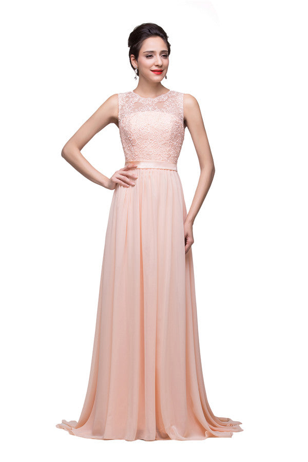 Floor-length A-line Crew Sash Chiffon Appliques Bridesmaid Dresses