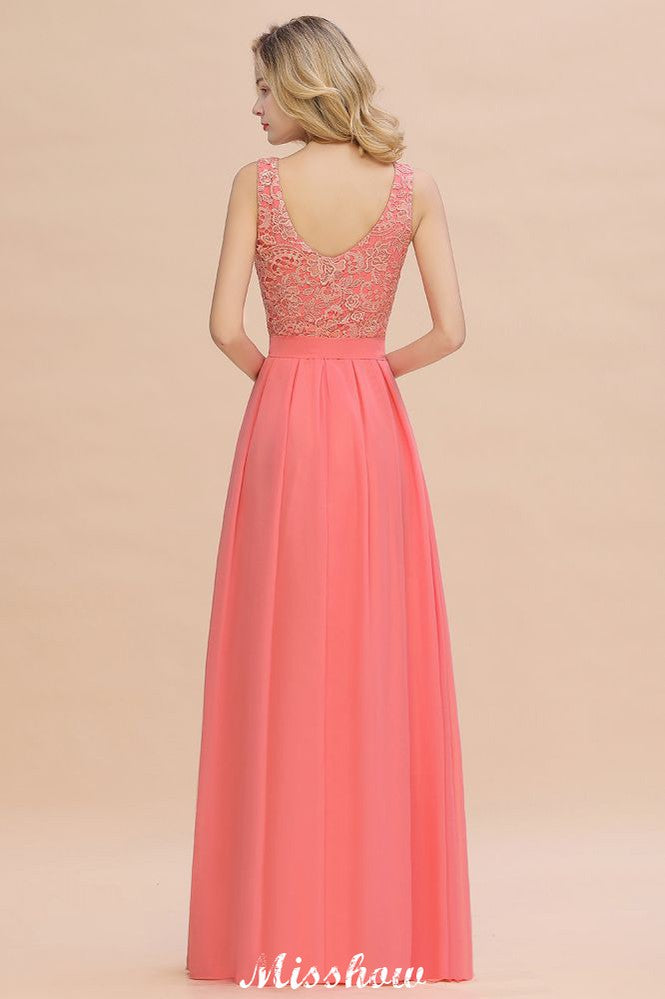 Floral Lace A-line Simple Wedding Dress Sleeveless Maxi Bridesmaid Dress