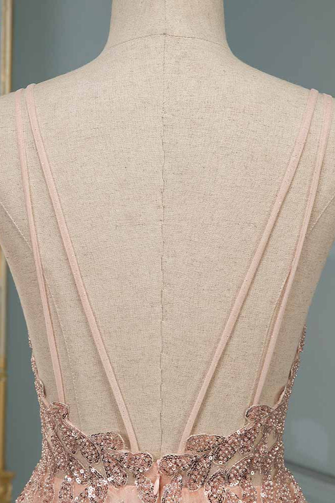 Amazing Sequins Long Evening Prom Dress Floor Length V-Neck