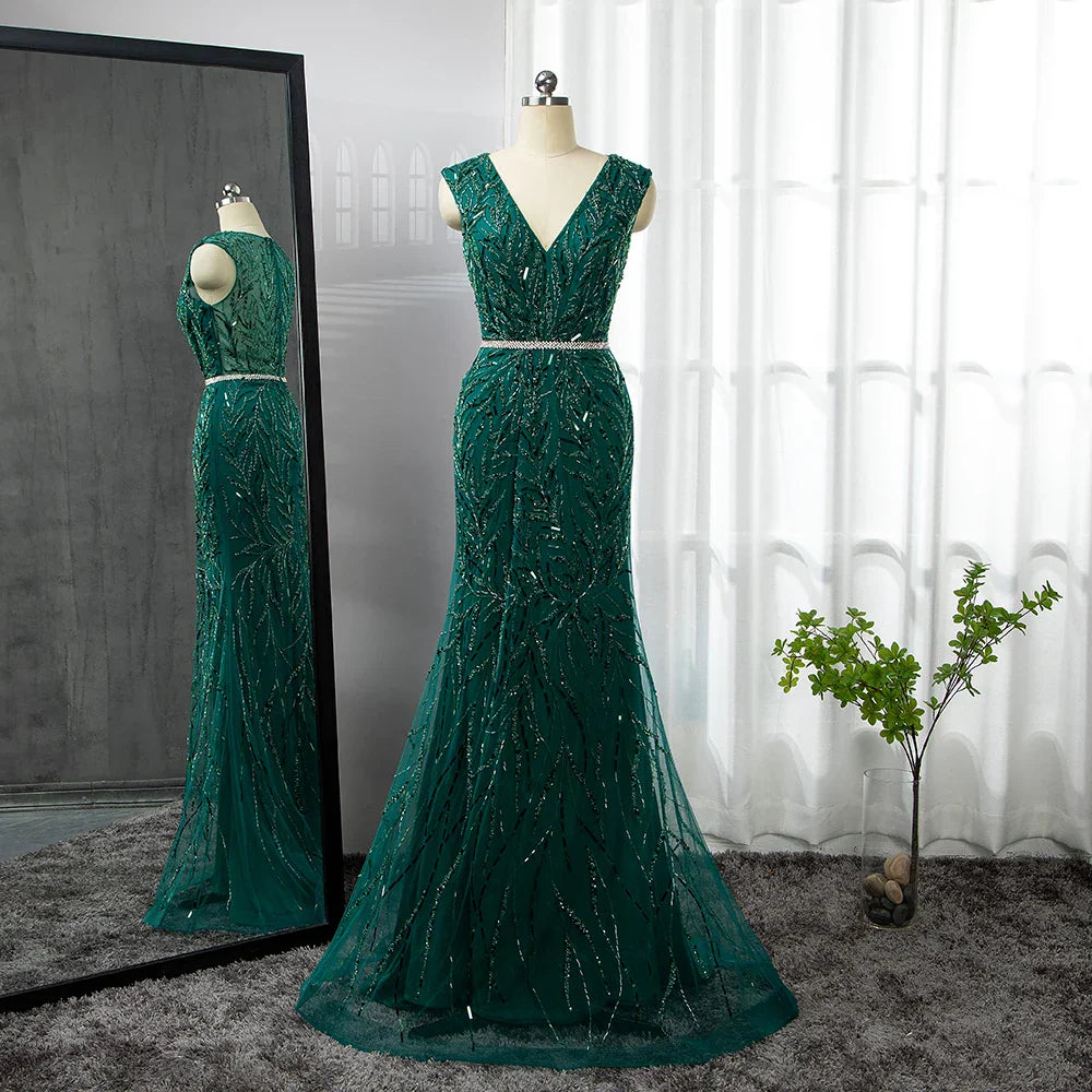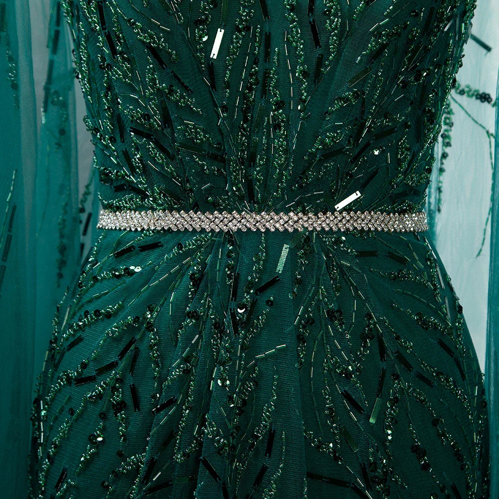 Gold Arabic Cape Sleeves Beaded Evening Dresses Gowns 2025 Mermaid Elegant Luxury For Women Party LA71496