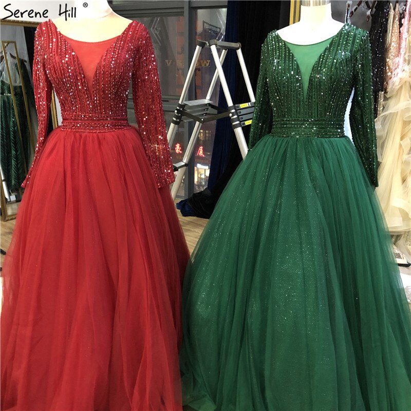Gold O-Neck Sequins Beading A-Line Evening Dresses Design 2025 Long Sleeves Lace Up Formal Dress LA70237