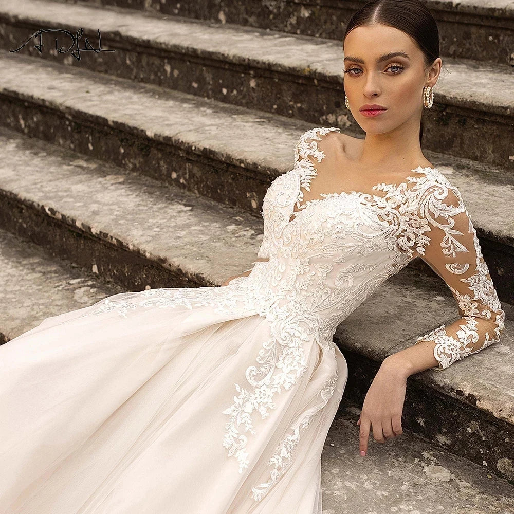 Gorgeous Lace Wedding Dresses Long Sleeve Women's Elegant Tulle Sticker Floral Champagne Bridal Gowns Princess Formal Party Robe