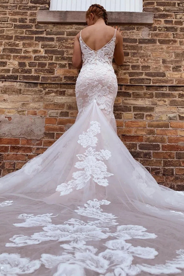 Gorgeous Mermaid Spaghetti Straps Wedding Dresses With Appliques WD702