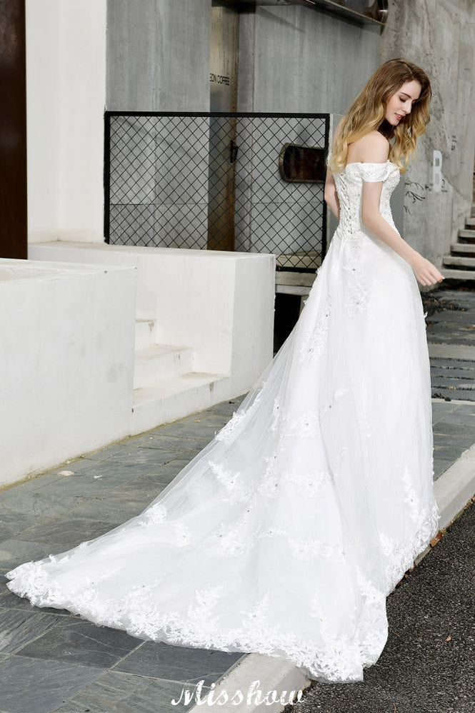 Gorgeous Off the Shoulder White aline Bridal Gown Garden Lace Appliques Wedding Dress