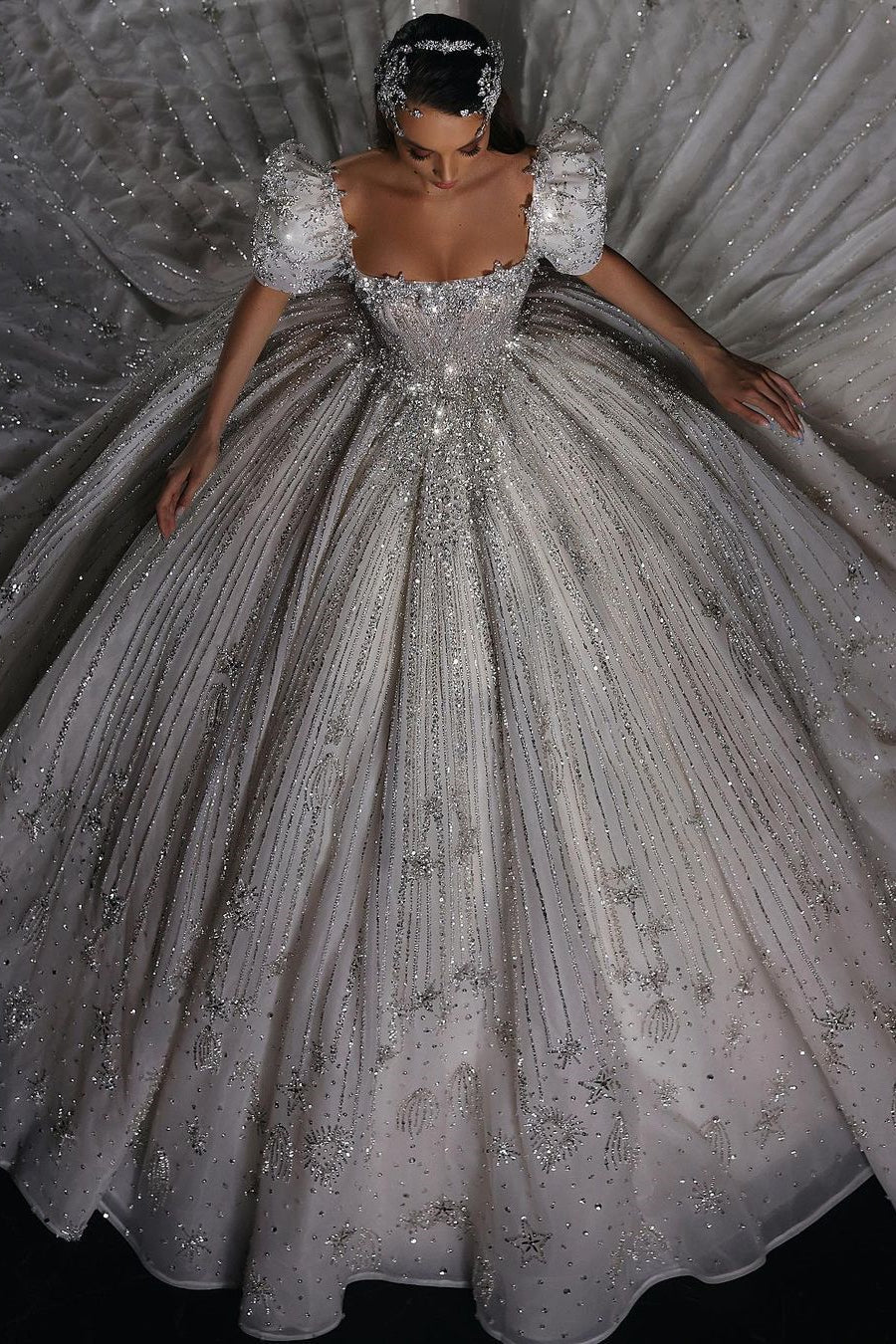 Gorgeous Princess A-line Beading Short Sleeves Wedding Dress With Lace