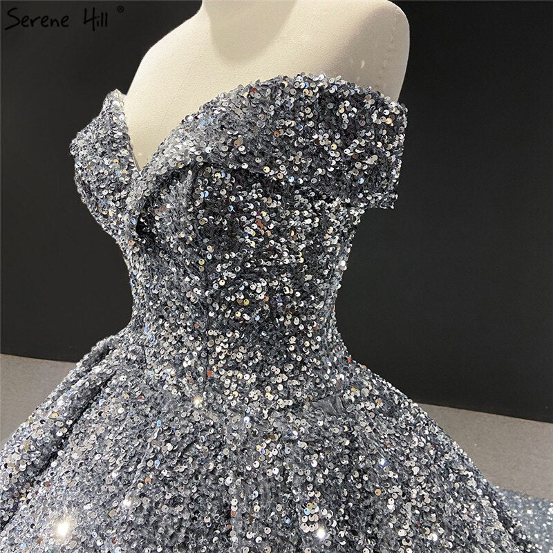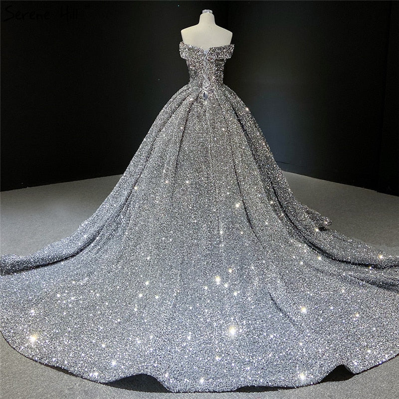 Grey Silver Sequined Wedding Dresses 2025 Dubai Sleeveess Sexy Luxury Bridal Gowns HM66742 Custom Made