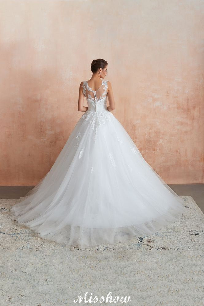 Illusion Neck White Wedding Dress Sleeveless Lace Appliques Bridal Gown online