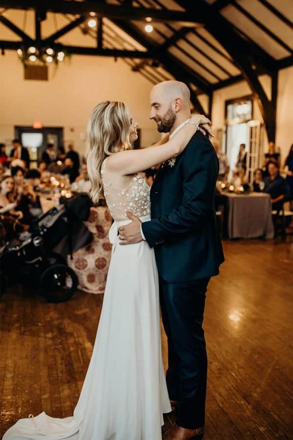 Illusion V-Neck A-line Beach Wedding Dress Chaple Train Sheath Bridal Gown WD423