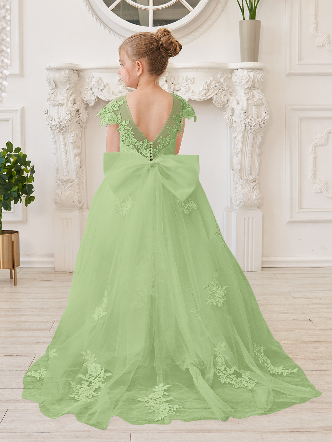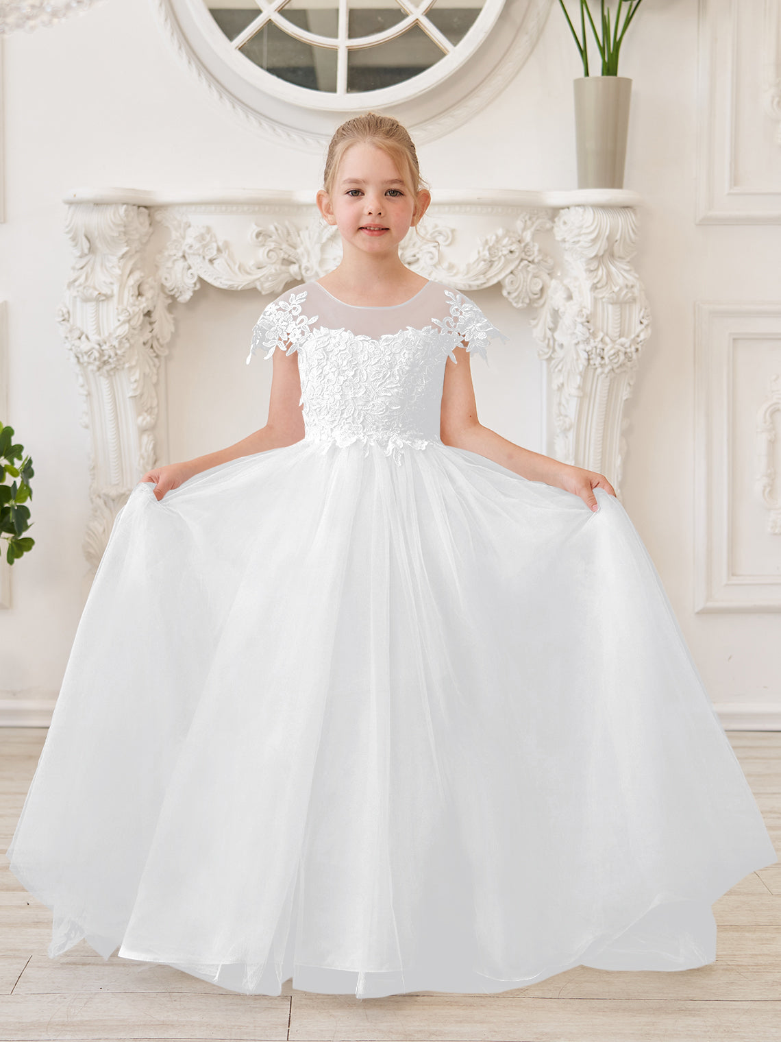 Ivory Detachable Train Princess First Communion Flower Girl Dress