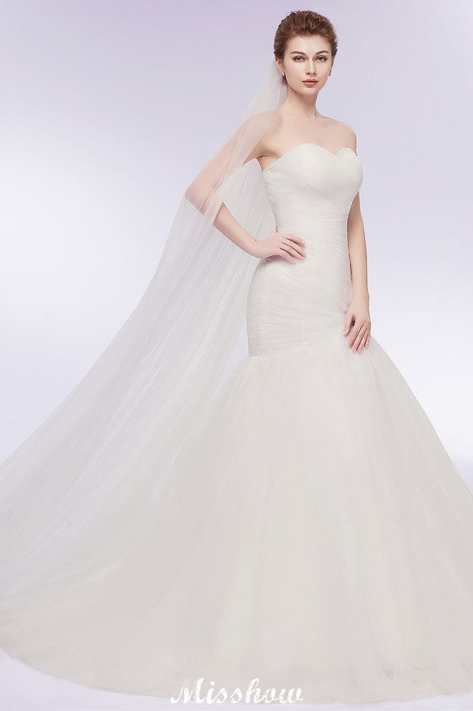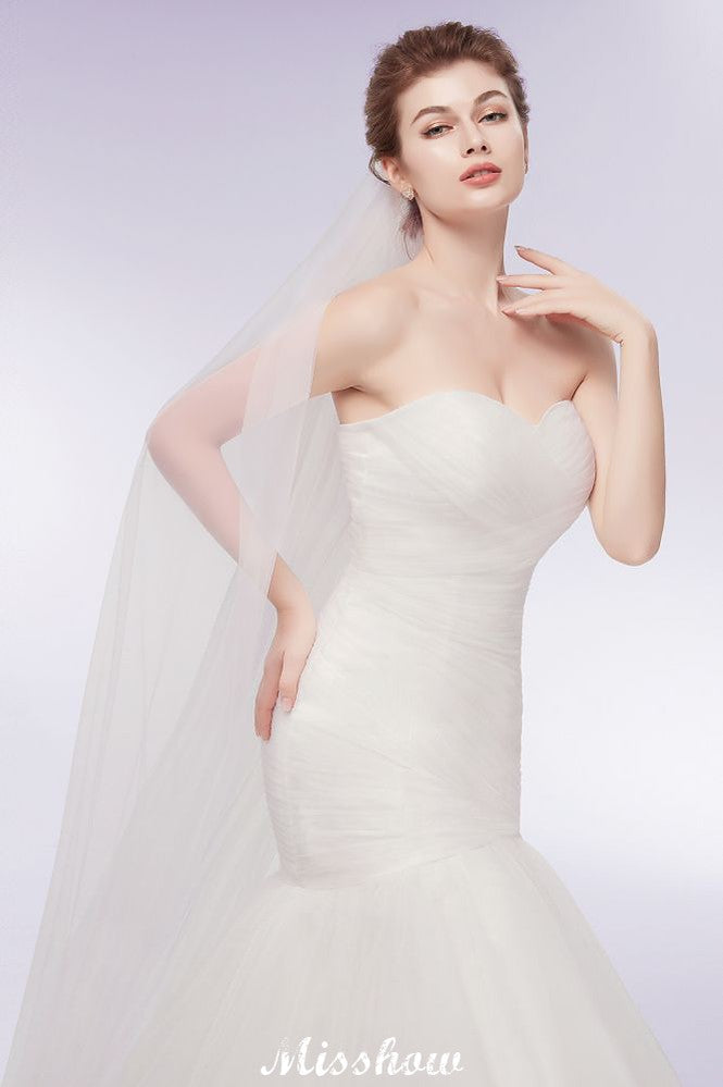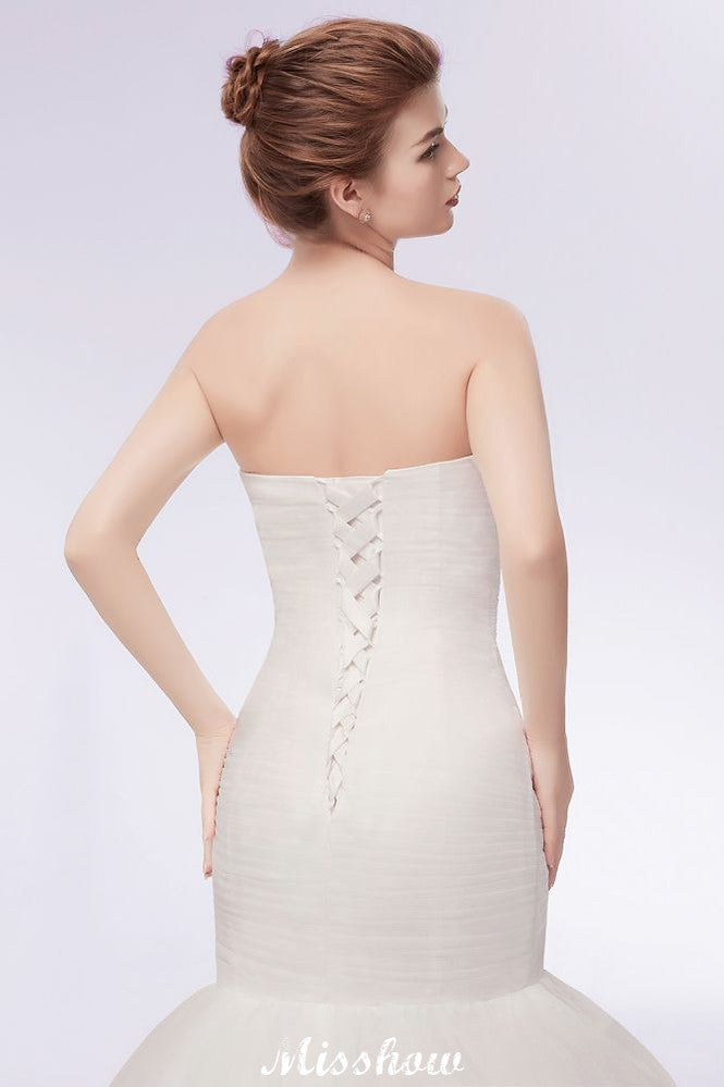 Ivory Tulle Sweetheart Mermaid Strapless Wedding Dresses with Lace-up