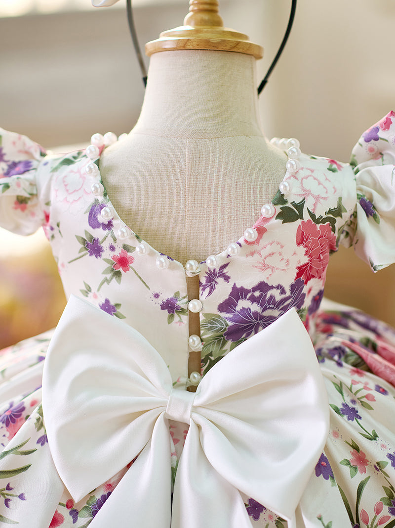 Floral Puff Sleeves Knee-length Baby Girl Dress