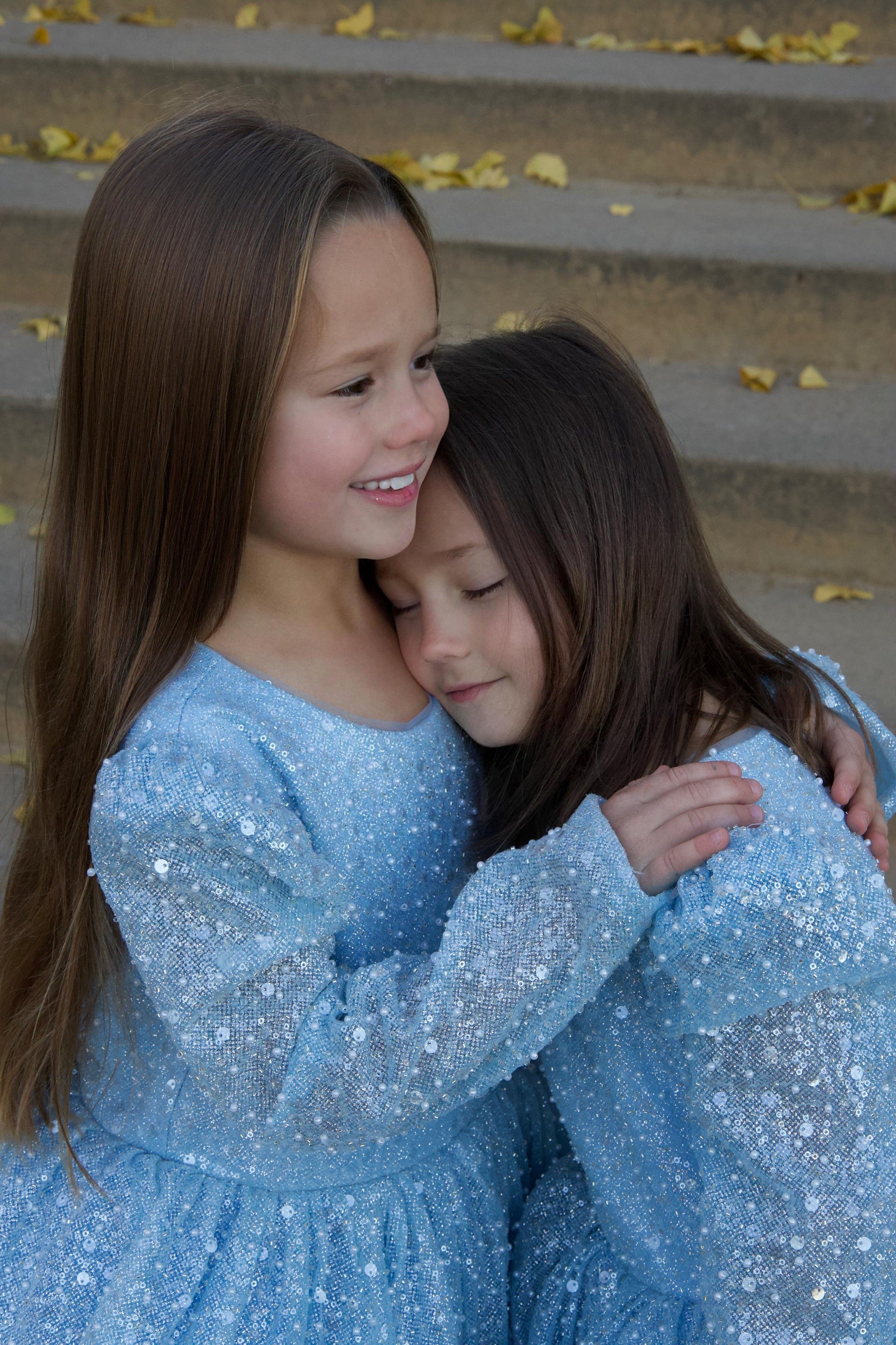 Long Sleeves Knee-length Blue Sequins Girl birthday Dress