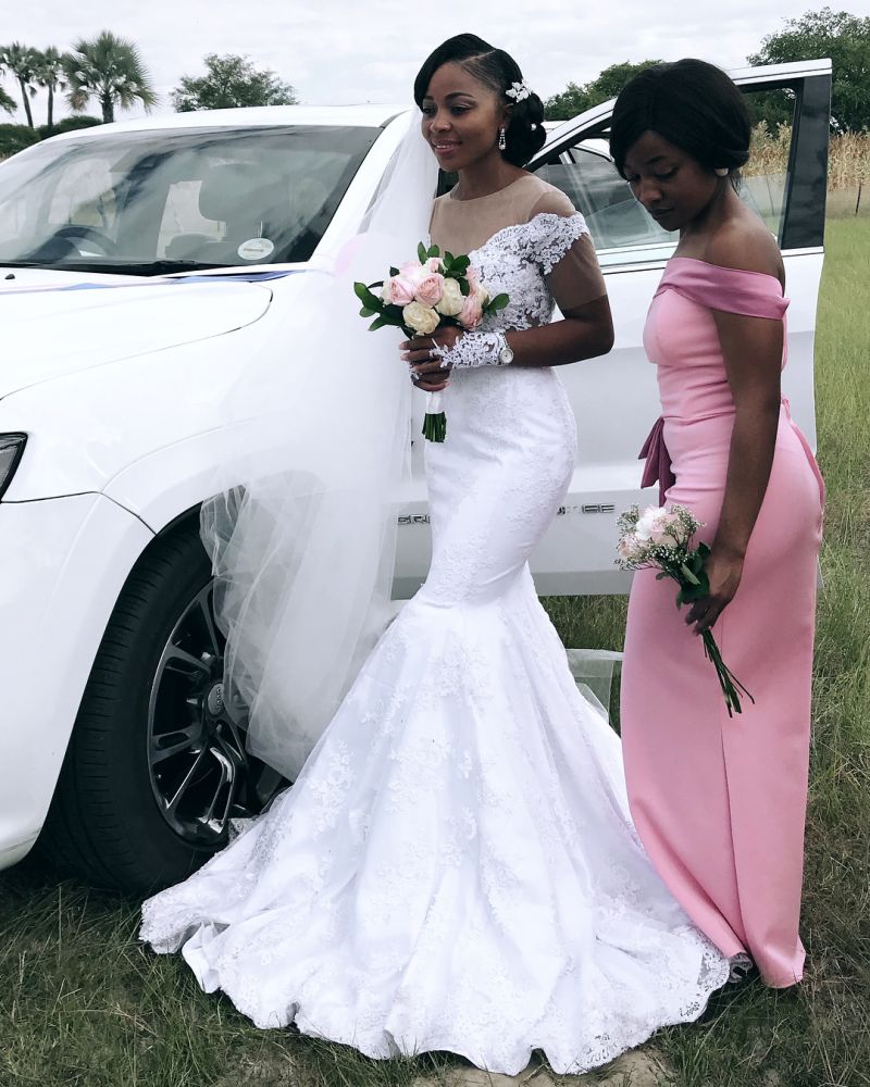Appliques Sheer Tulle Mermaid Wedding Dress Pleated Bridal Wears