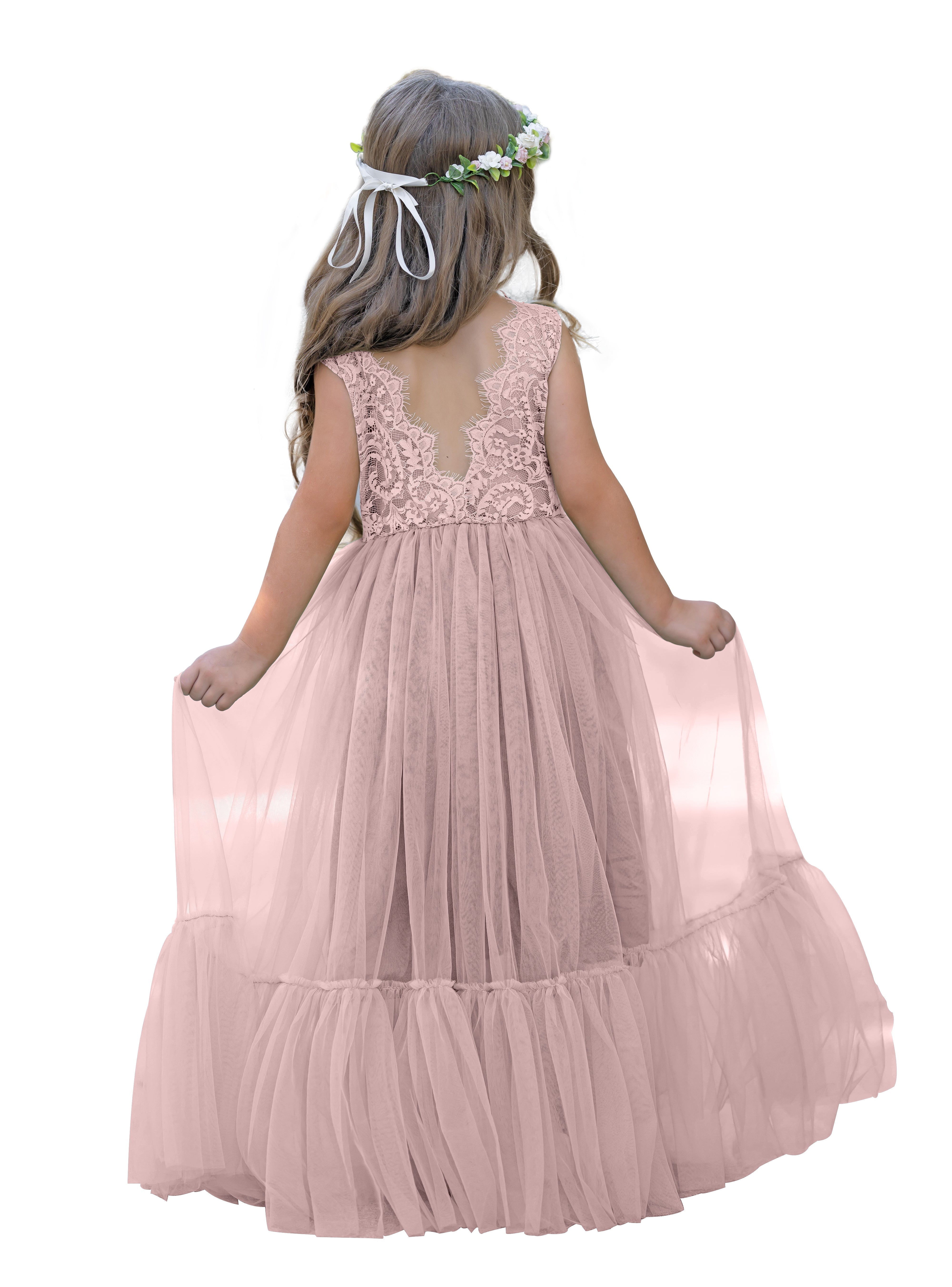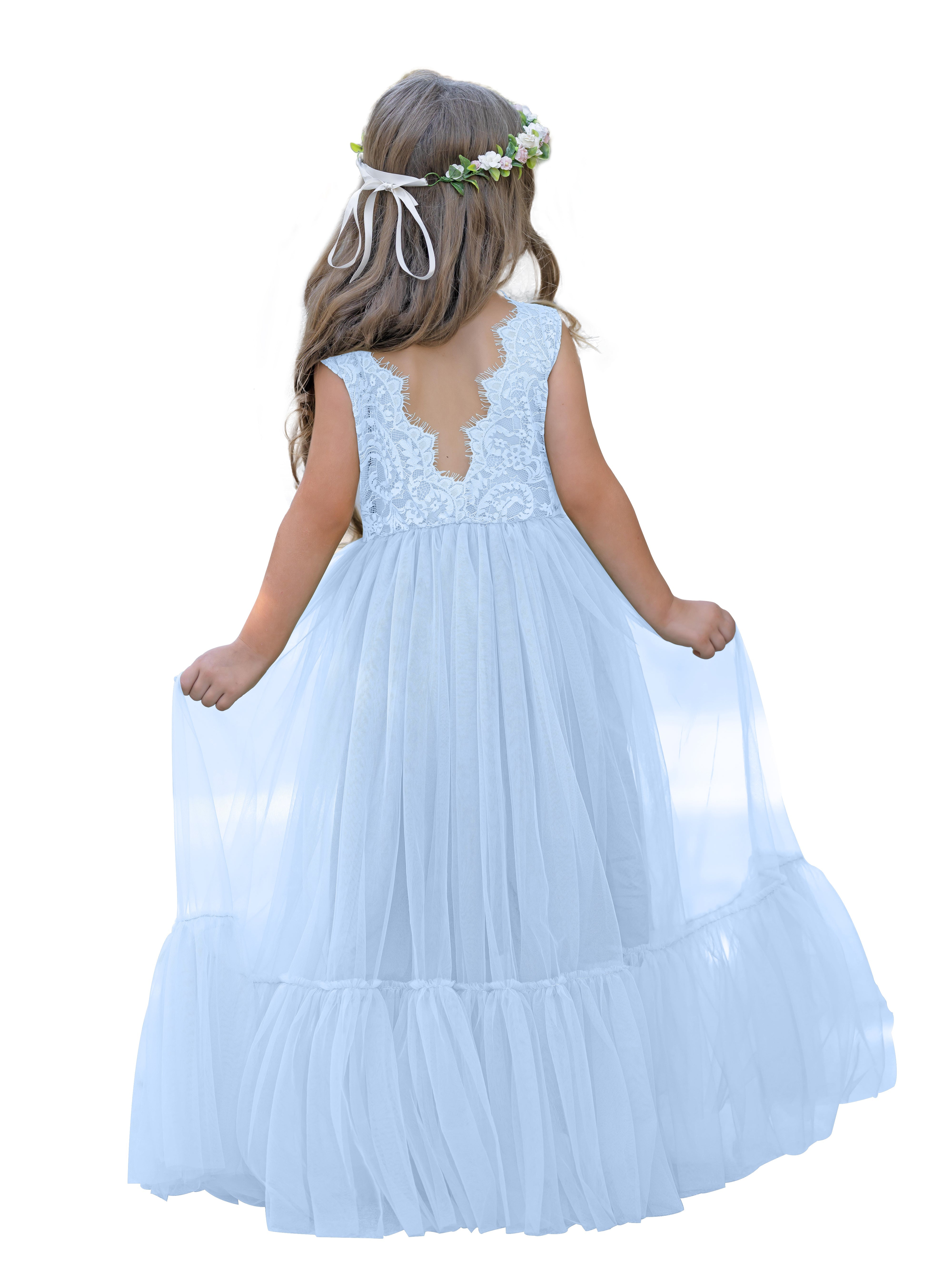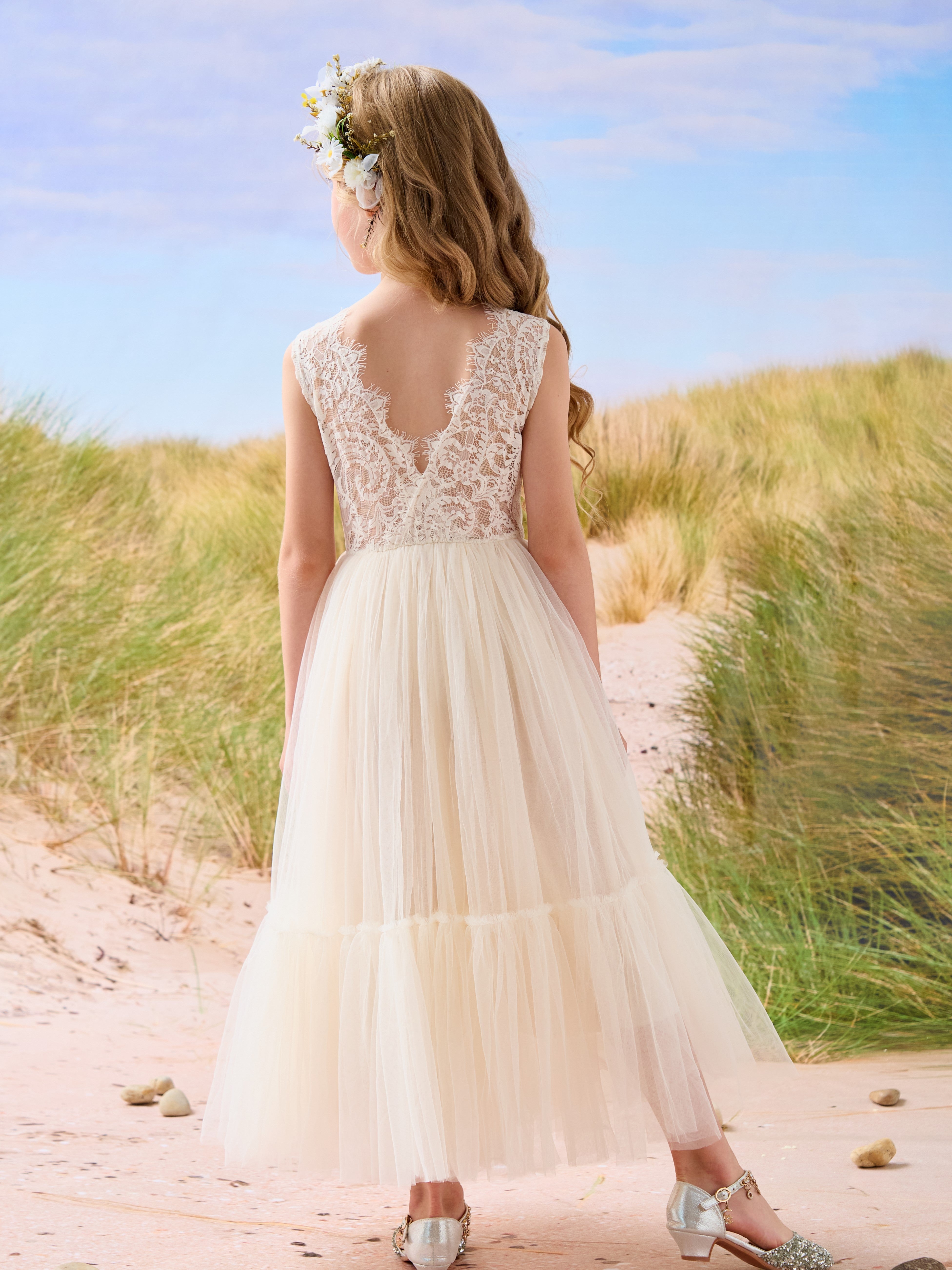 Lace Tulle Floor-length Boho Flower Girl Dress