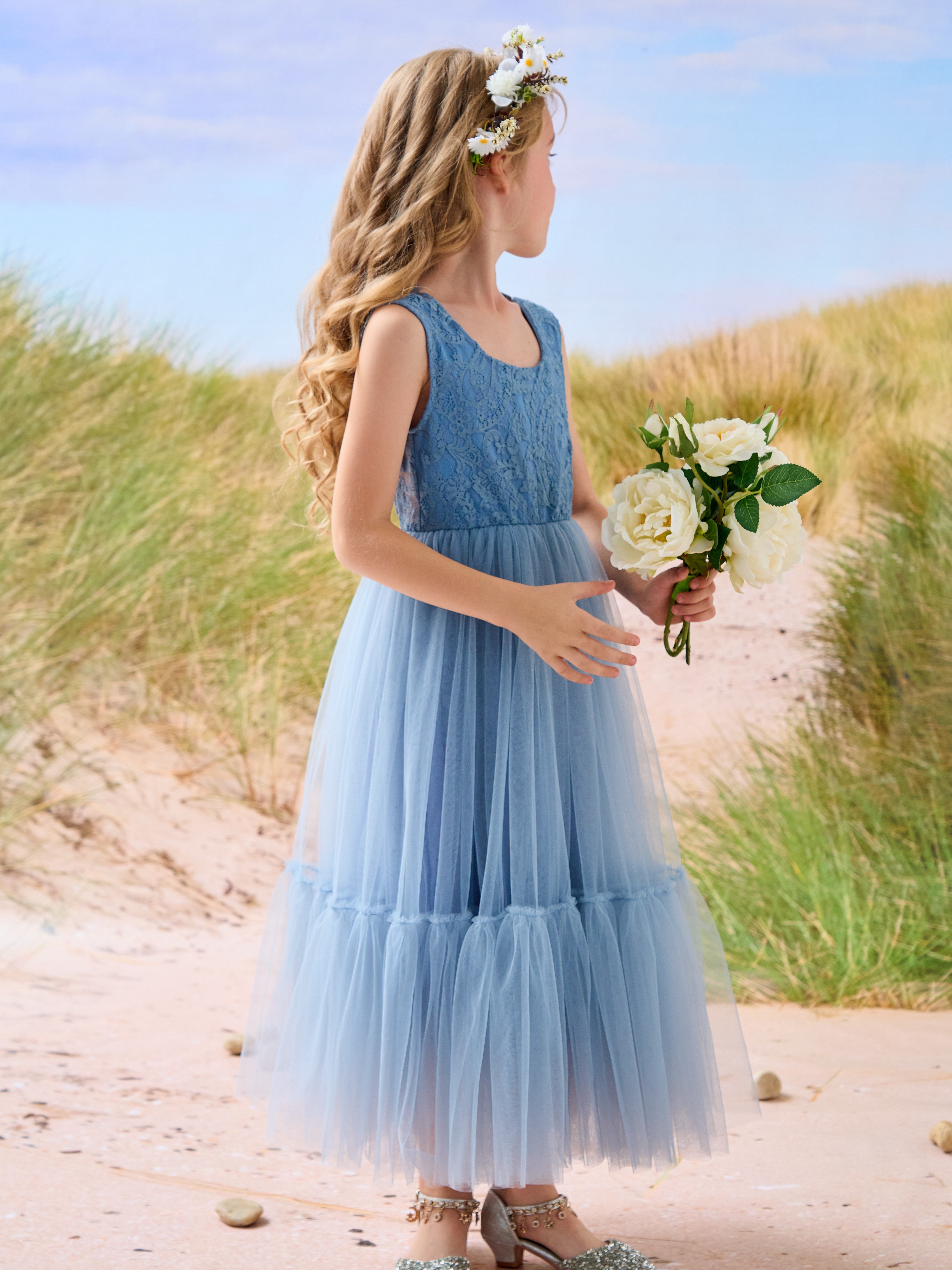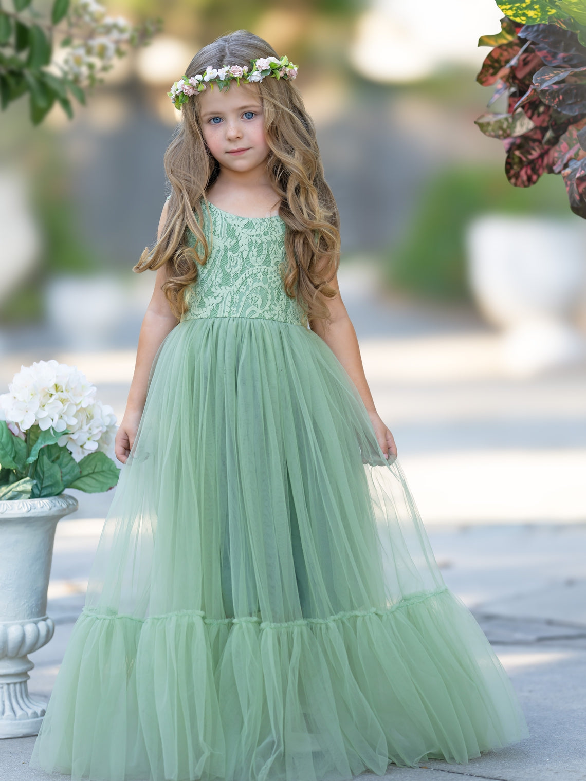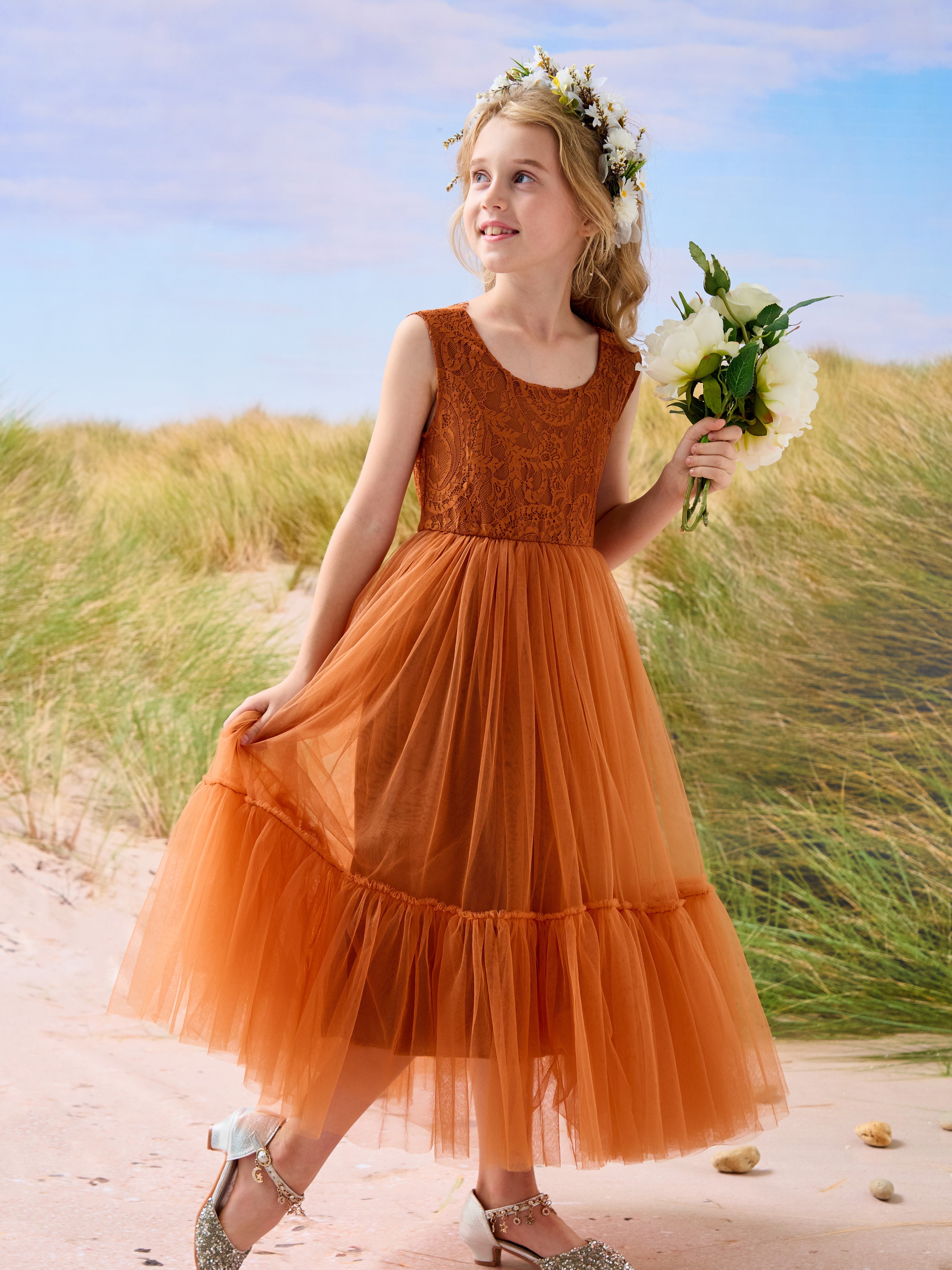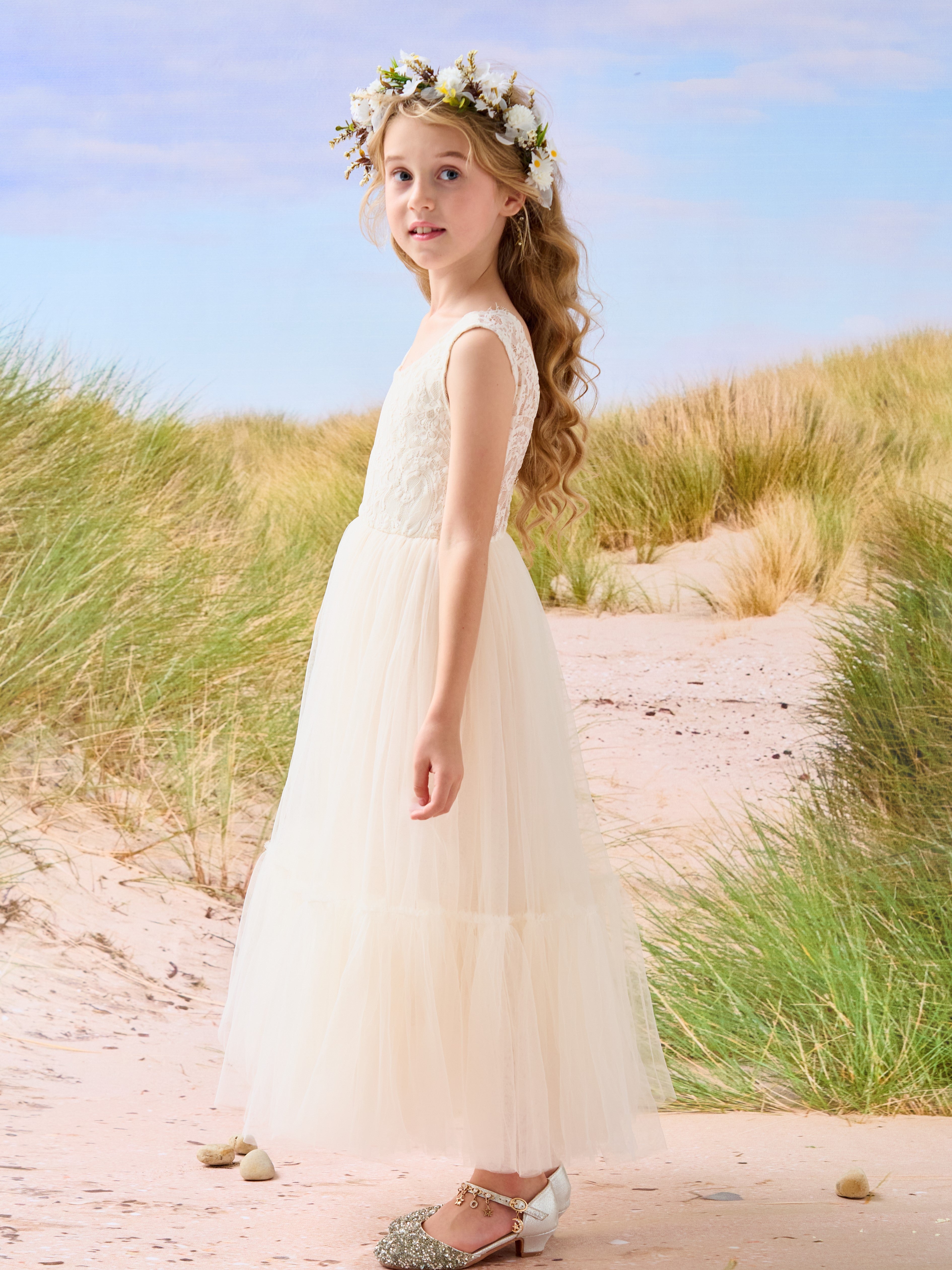 Lace Tulle Floor-length Boho Flower Girl Dress