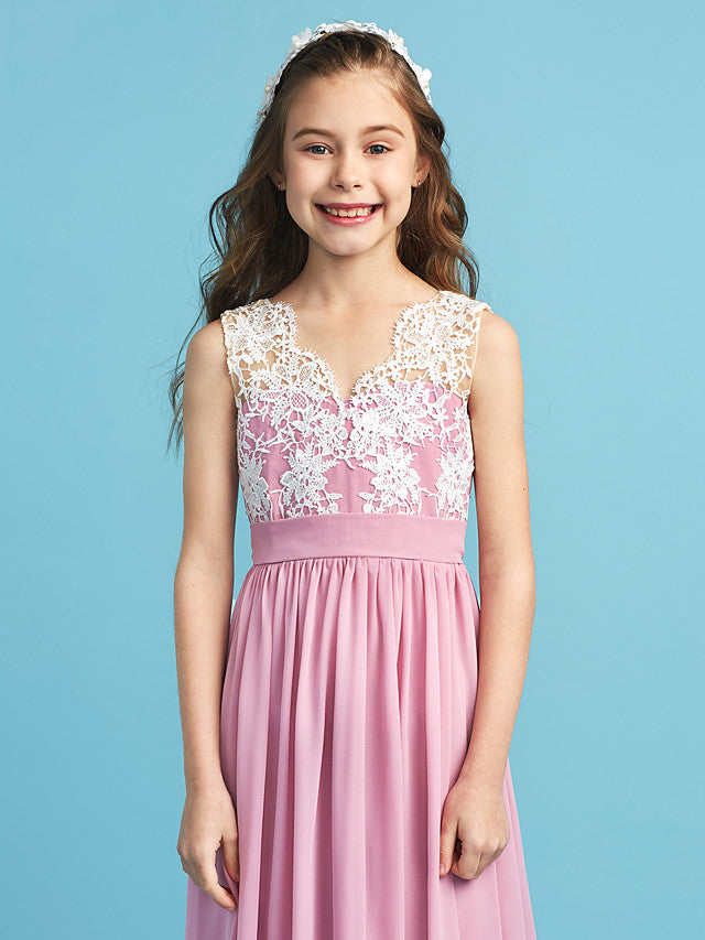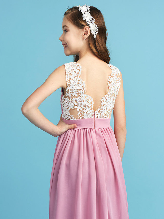 Long A-line Chiffon Flower Girl Dresses Lace Junior Bridesmaid Dress