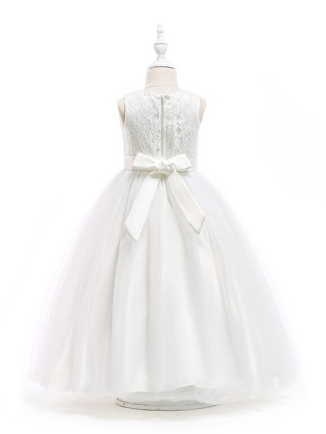 Long Princess Jewel Neck Tulle Wedding First Communion Flower Girl Dresses