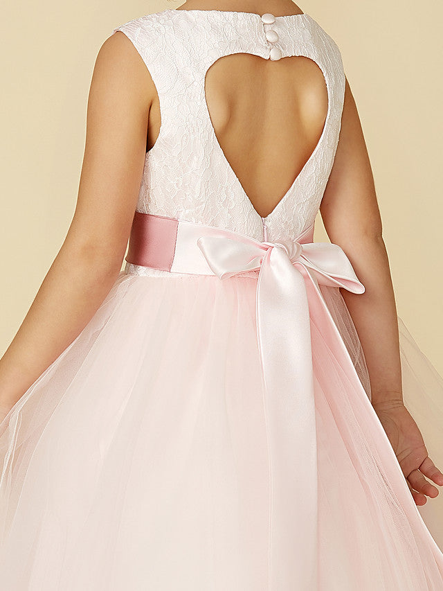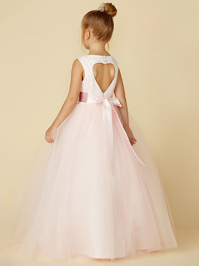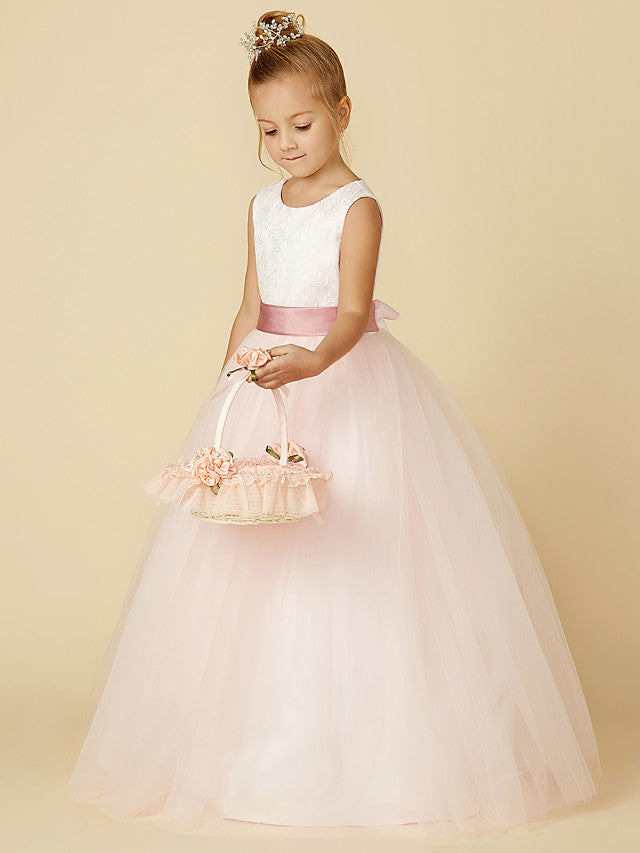 Long Princess Satin Tulle Wedding Birthday Pageant Flower Girl Dresses