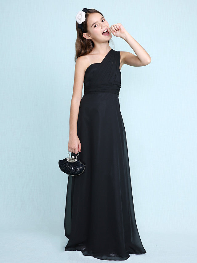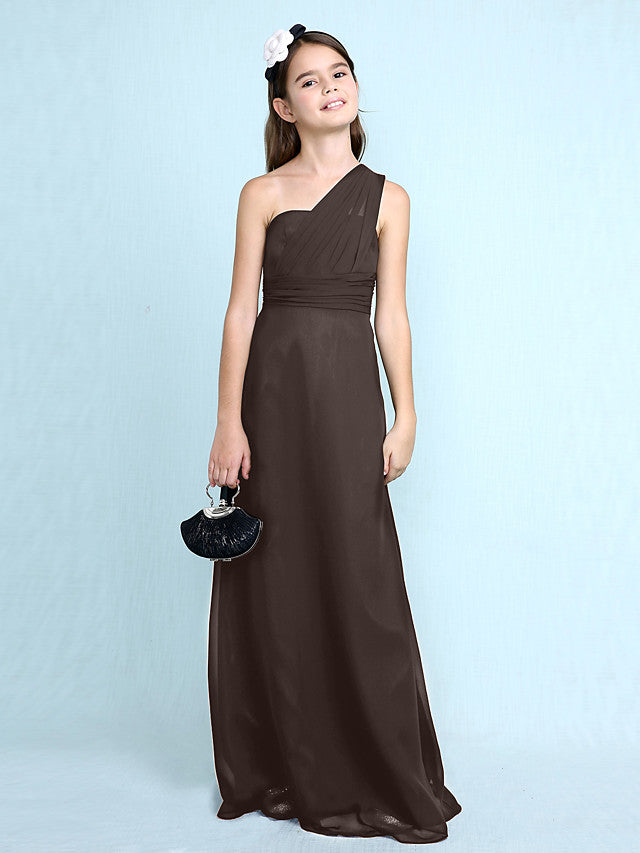 Long Sheath One Shoulder Flower Girl Dresses Chiffon Junior Bridesmaid Dress
