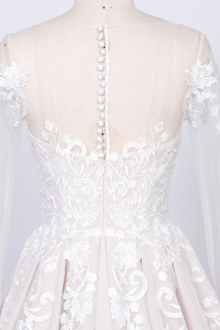 Long Sleeve Appliques Tulle A-line Wedding Dress