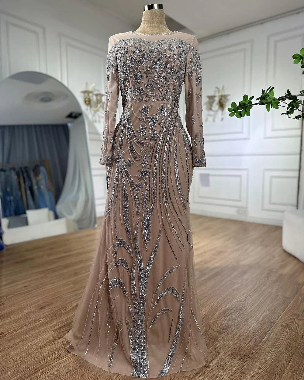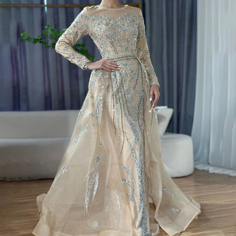 Muslim Mermaid Nude With Overskirt Beaded Dubai Evening Dresses Gowns 2025 For Wedding Party LA71943