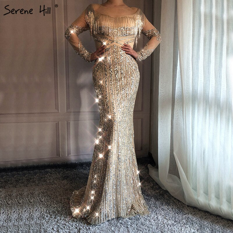 Newest Long Sleeves Luxury Slim Sexy Evening Dresses 2025 Mermaid Tassel Beading High-end Fashion Evening Gowns LA6467