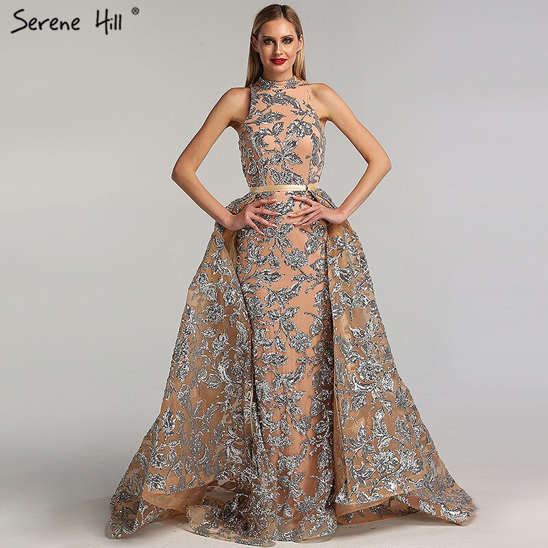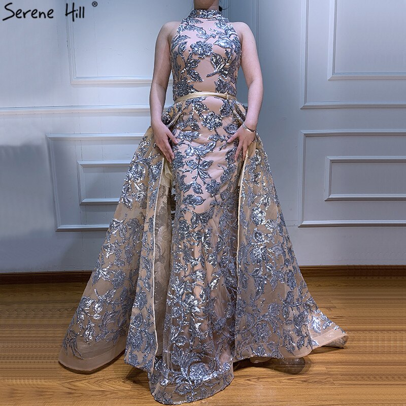 Nude Silver Sequined Sparkle Vintage Evening Dresses Halter Luxury Sexy Sleeveless Evening Gowns 2025 LA60877
