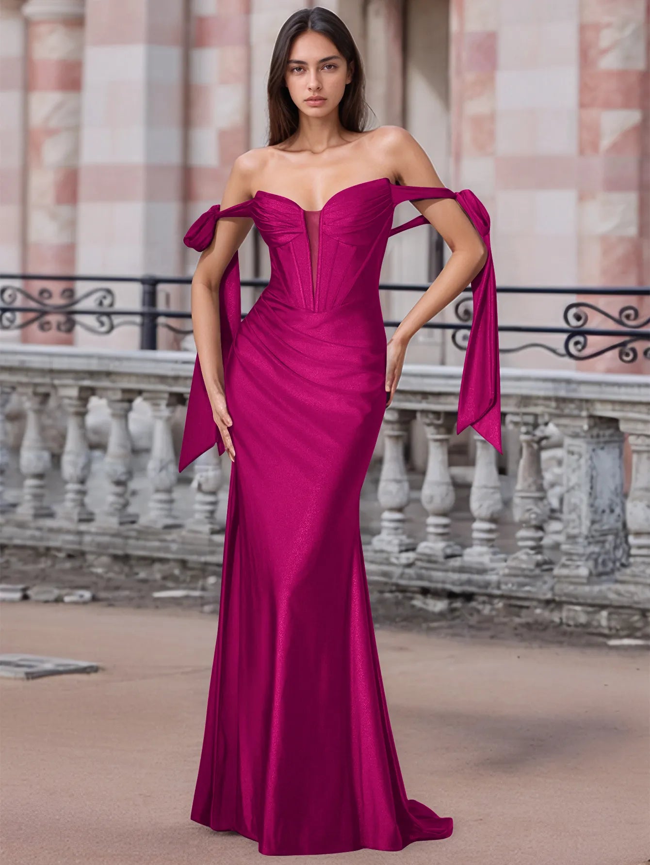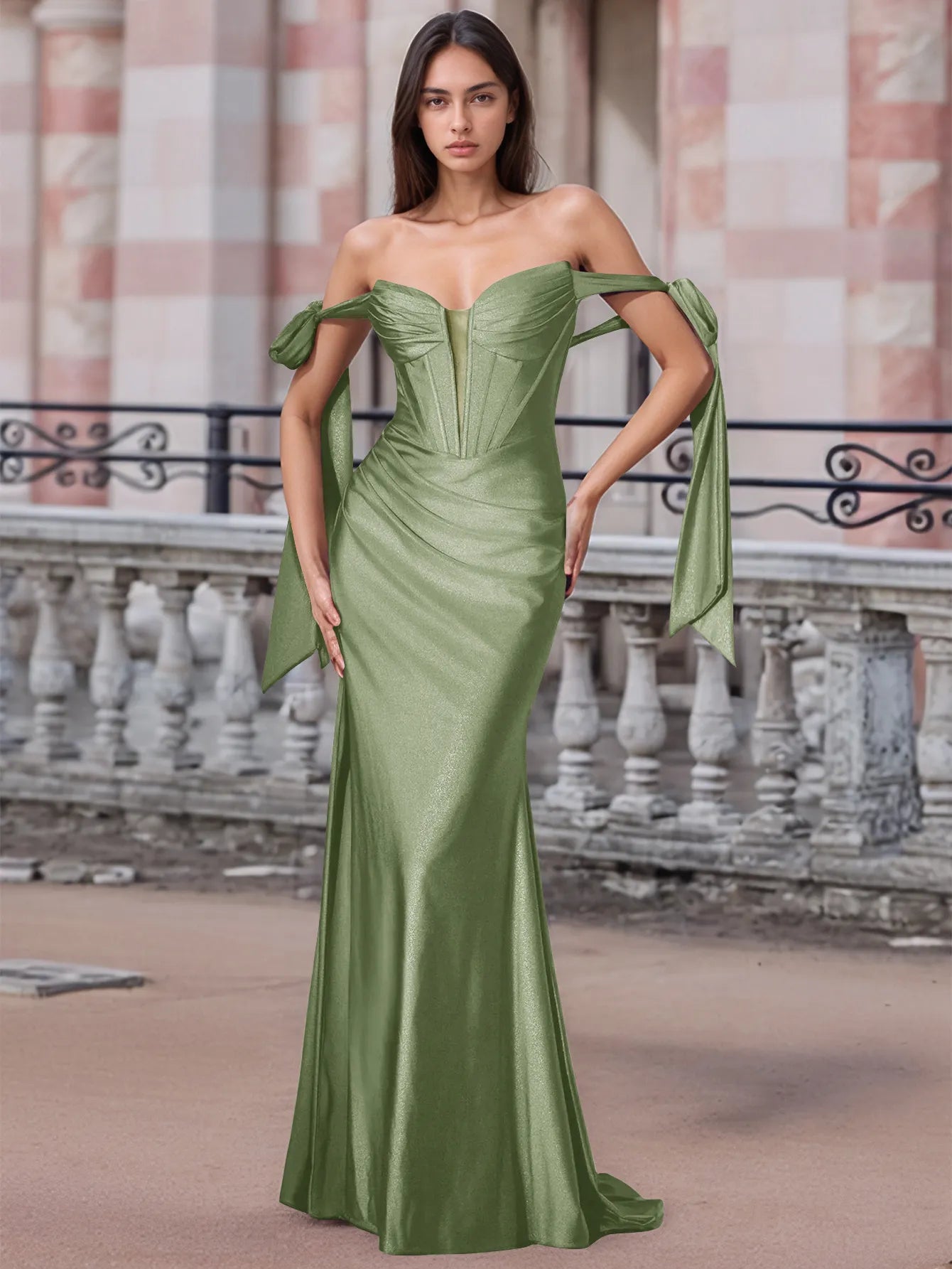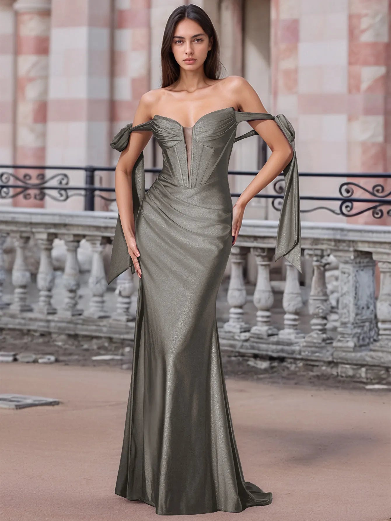 Off Shoulder Lace Up Bow Trumpet Prom Dress