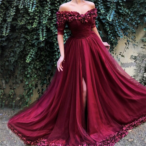 Off Shoulder Wine Red 2025 Half Sleeves Simple Sexy Beach Evening Gowns LA60762 women evening dress