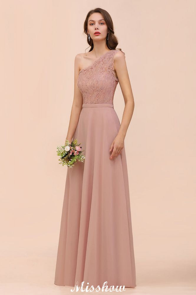 One Shoulder Chiffon Bridesmaid Dress Dusty Pink Wedding Guest Dress for Bride
