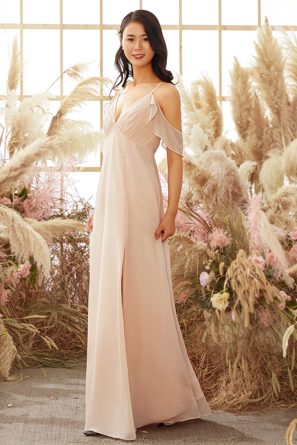 Pink Off Shoulder A line Bridesmaid Dress