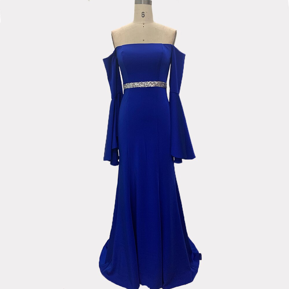 Sale Pink Off Shoulder Mermaid Sexy Evening Dressese Long Trumpet Sleeves Simple Evening Gowns 2025 LA70191
