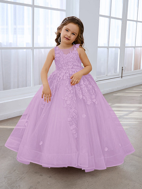 Pink Princess Ball Gown for Girls with Lace Appliqués