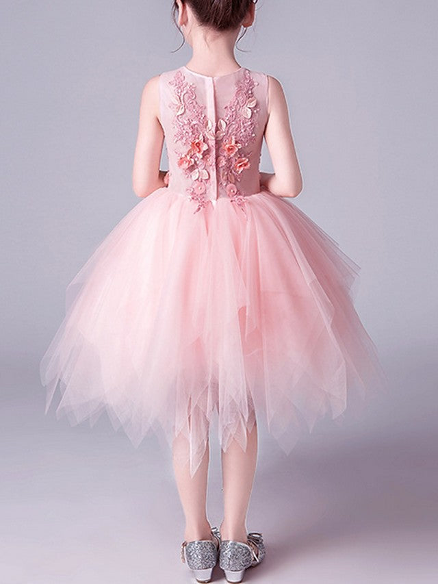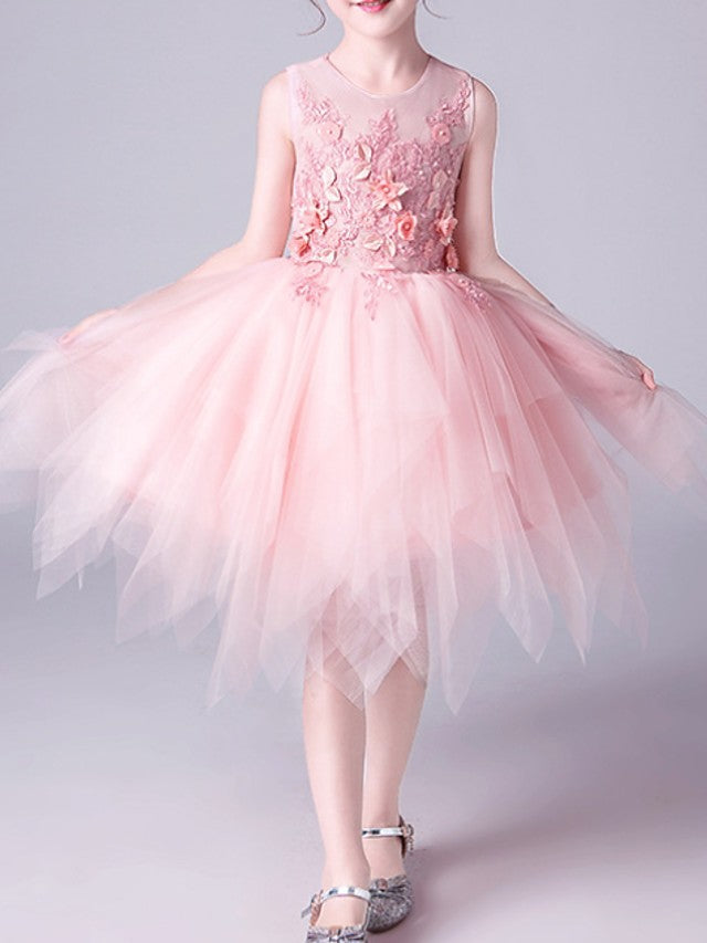 Pink Short A-Line Tulle Jewel Neck Pageant Flower Girl Dresses