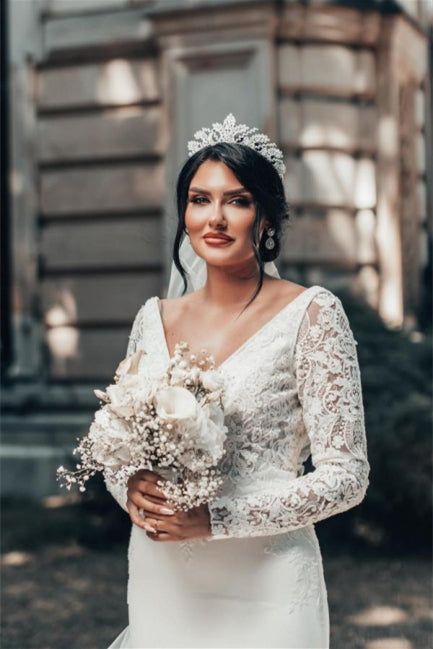 Romantic Backless Long Sleeves Mermaid Wedding Dresses