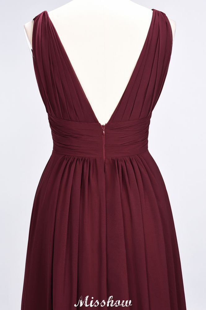 Ruffle Chiffon Sleeveless Evening Maxi Gown V-Neck Bridesmaid Dress