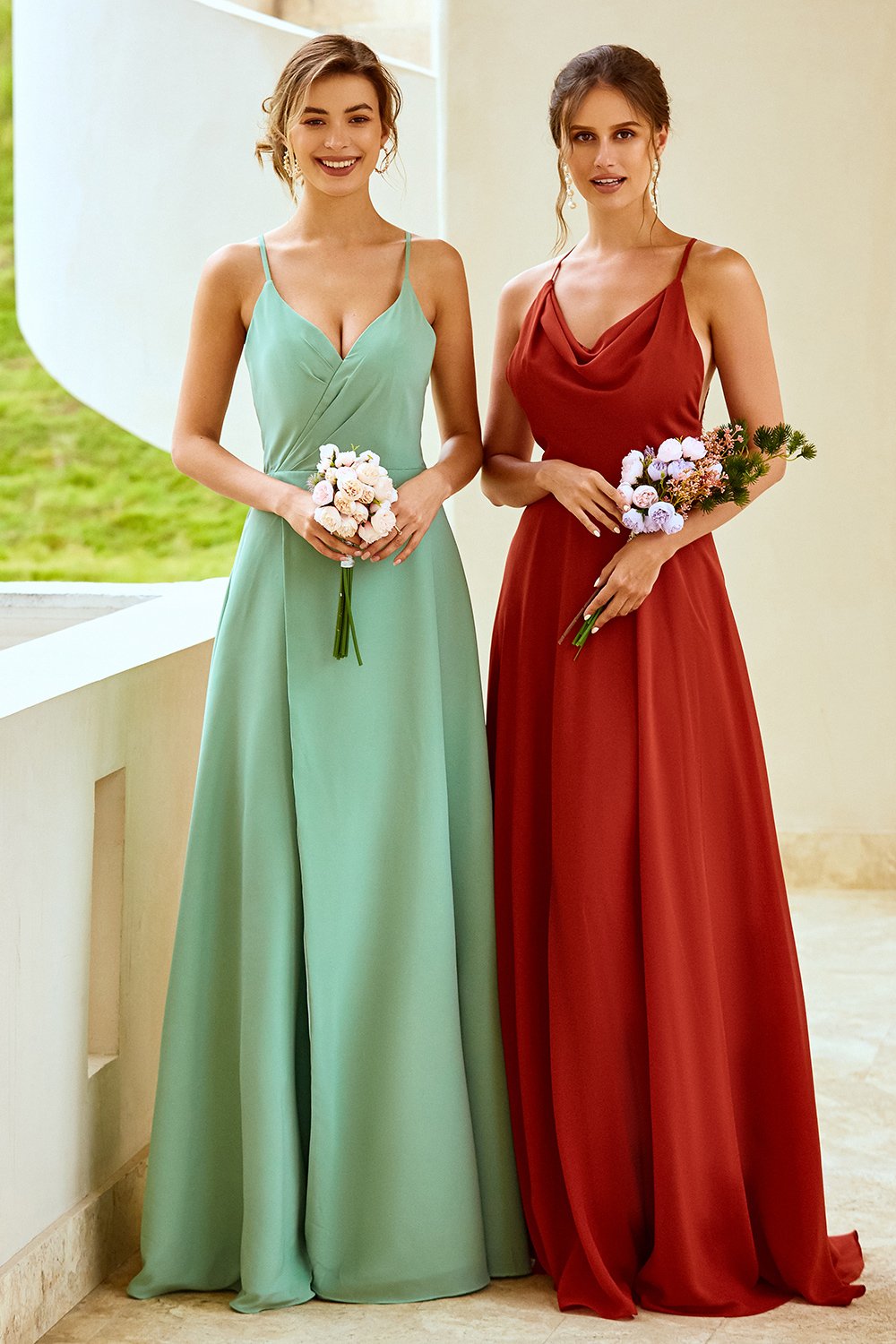 Spaghetti Straps Long Bridesmaid Dress