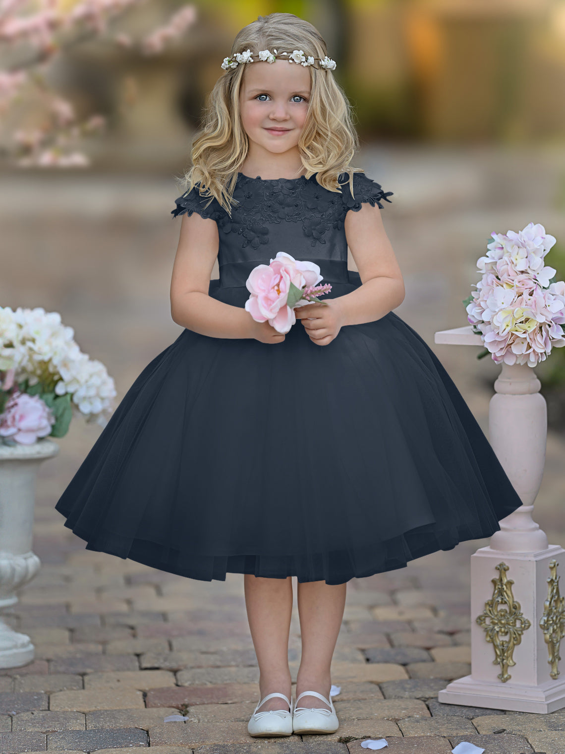 Satin Tulle Tea-length Ivory First Communion Flower Girl Dress