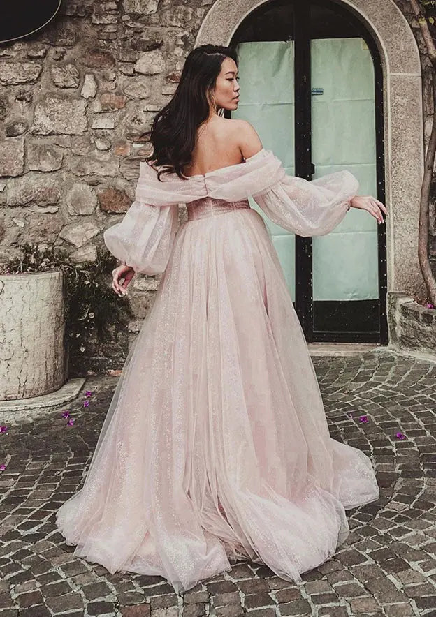 2025 Arabic Pink A-Line Off-the-Shoulder Side Split Luxury Dubai Prom Dress for Women's Party LA72677