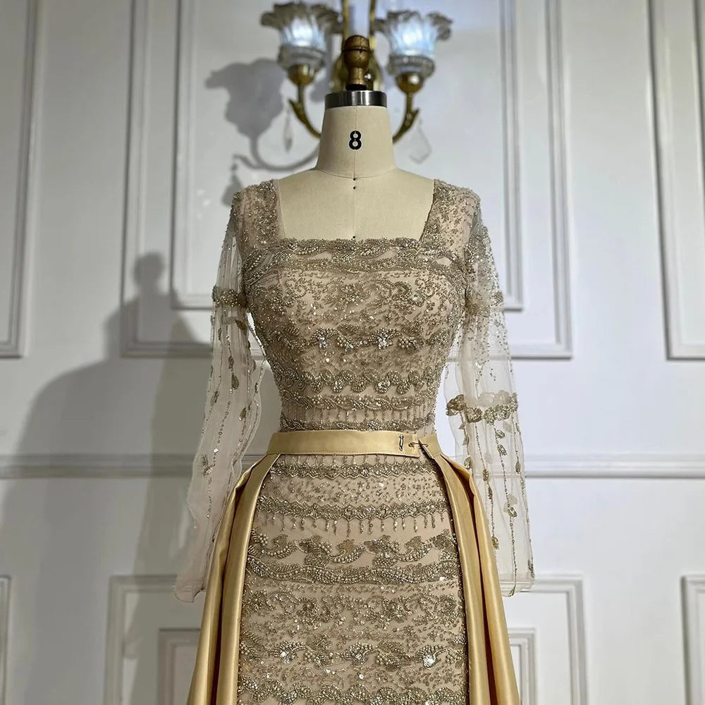 Luxury Dubai Arabic Sage Green Mermaid Evening Dress Gowns for Party LA72126A