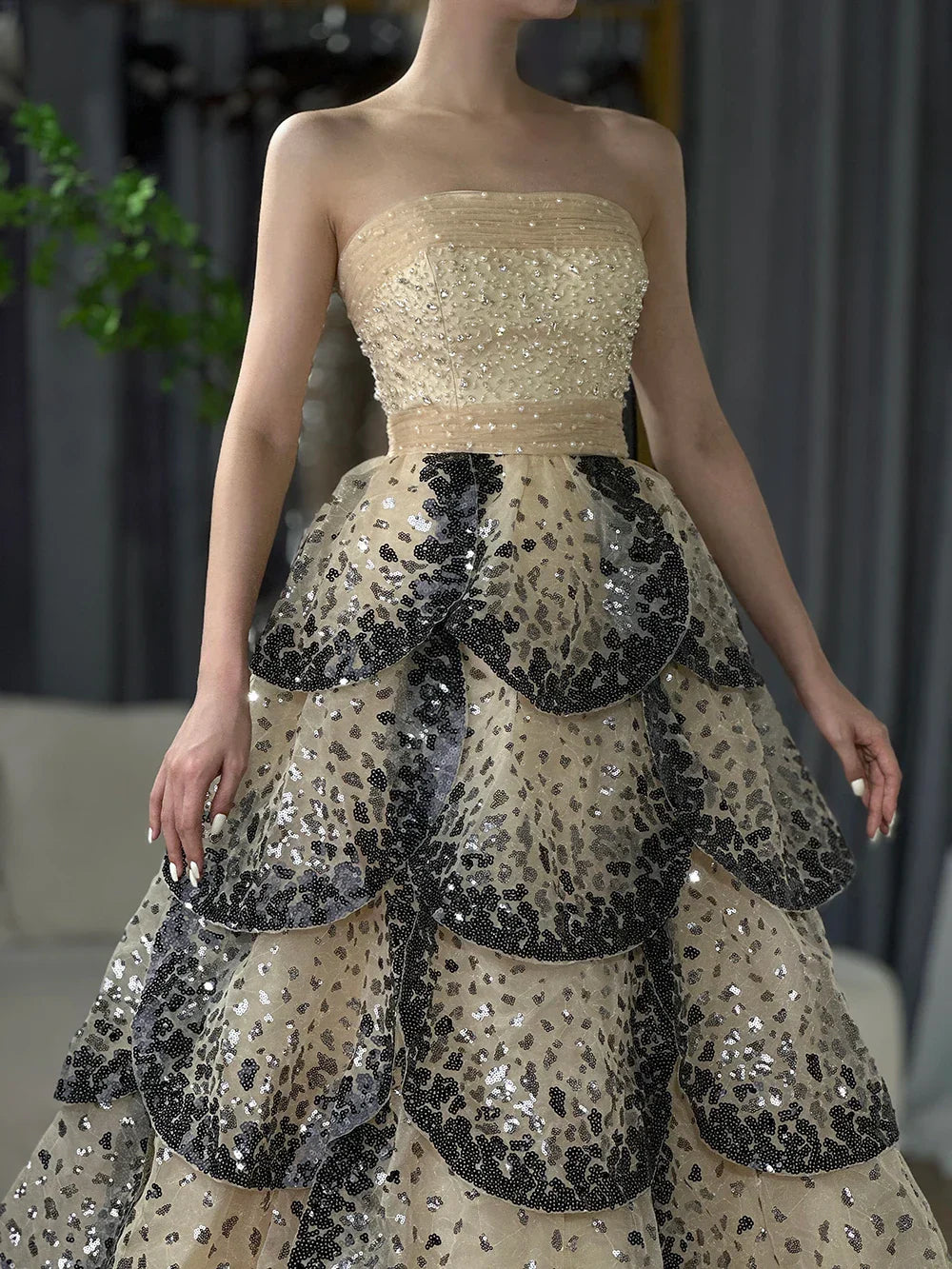 Luxury Black and White Ball Gown Dubai Evening Dress LA72505A