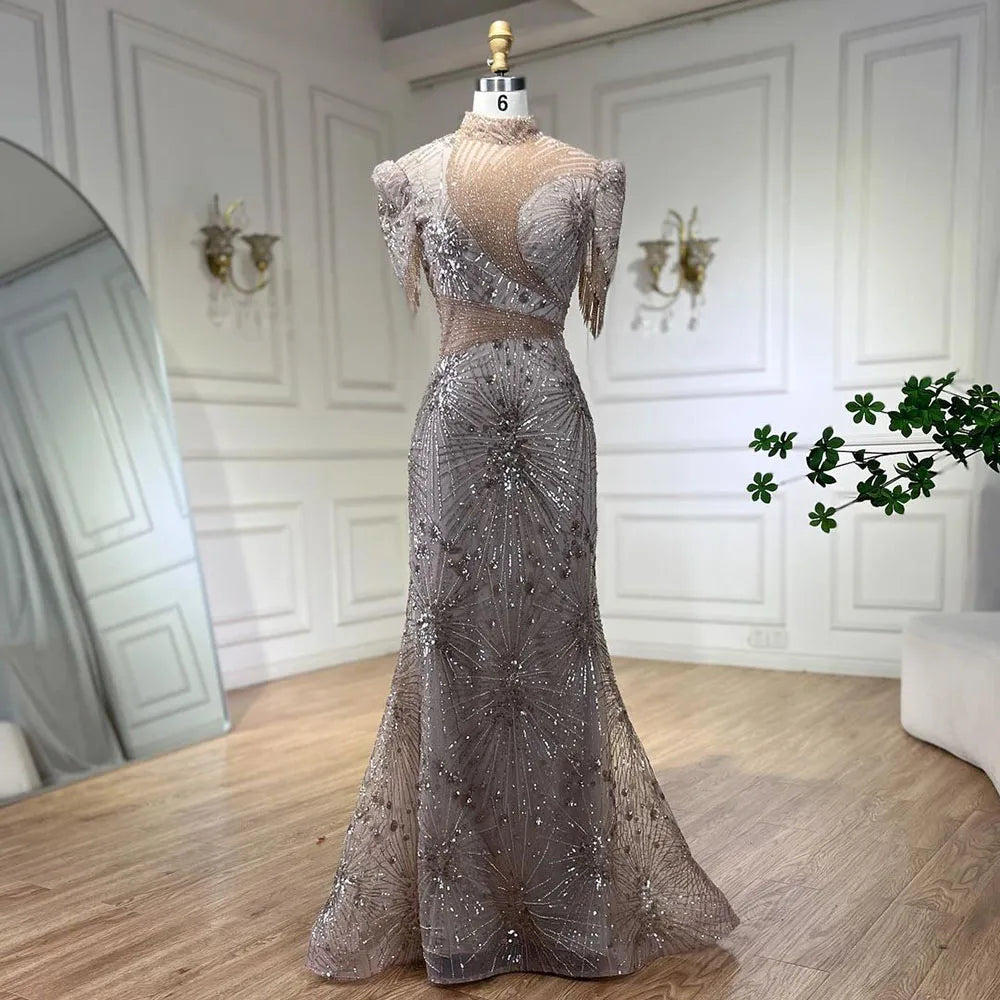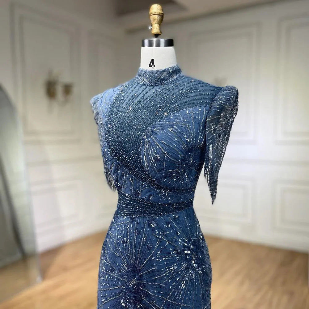 2025 Blue Mermaid Pink Elegant Beaded Short Tassel Luxury Evening Dresses Gowns for Woman Wedding Party LA72417