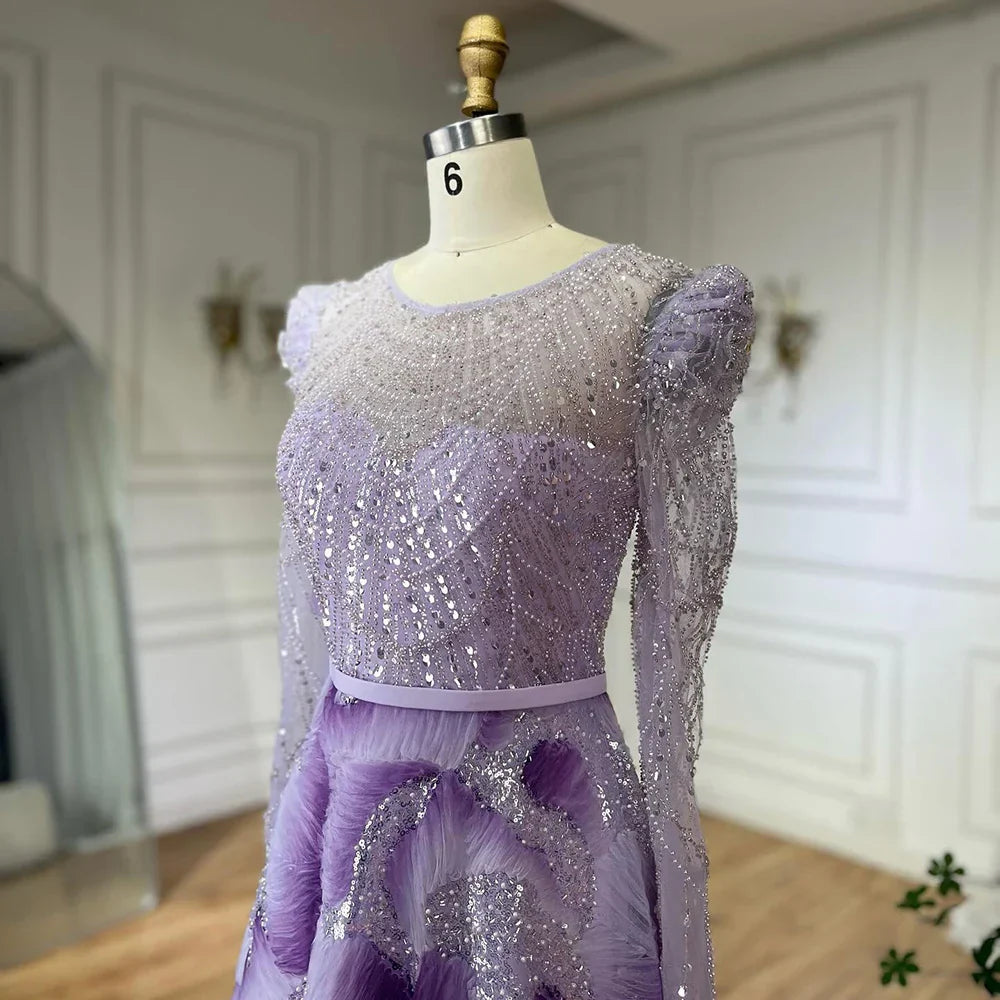 2025 Muslim Elegant Lilac Beaded A Line Evening Gown for Formal Occasion LA72847