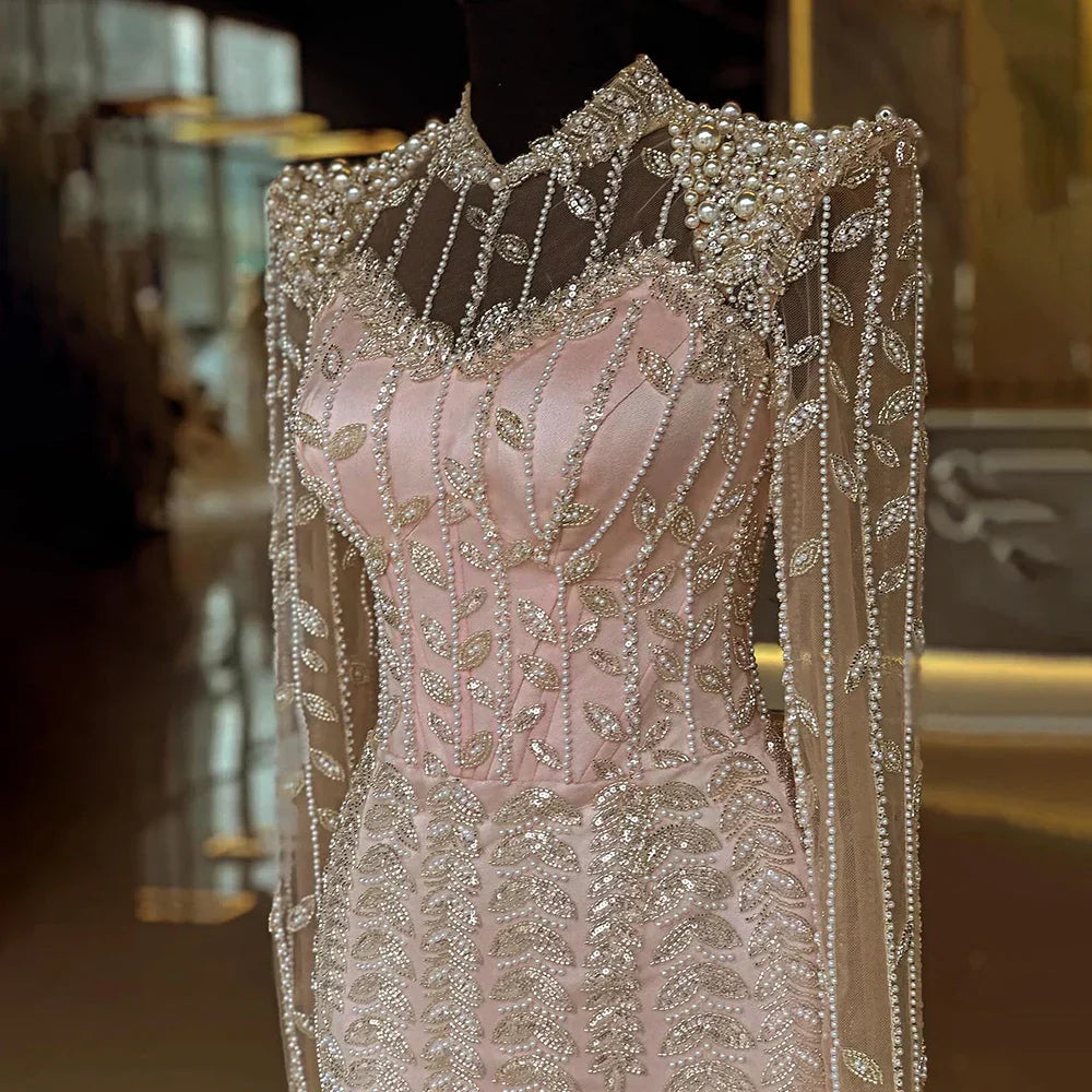 Beige Long Sleeves Arabic Evening Dresses LA72826