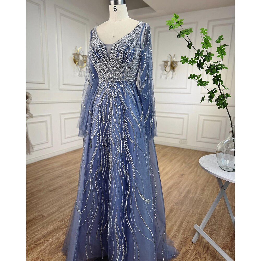 Arabic Blue A Line Beaded Evening Dresses Long 2025 Celebrity Gowns For Women Wedding Party LA72099