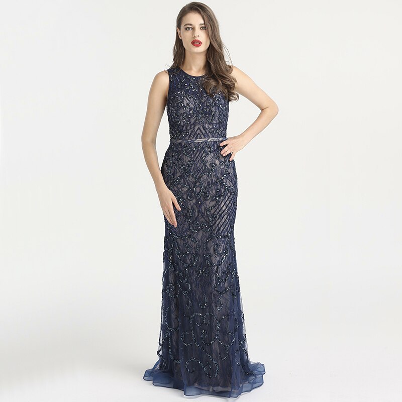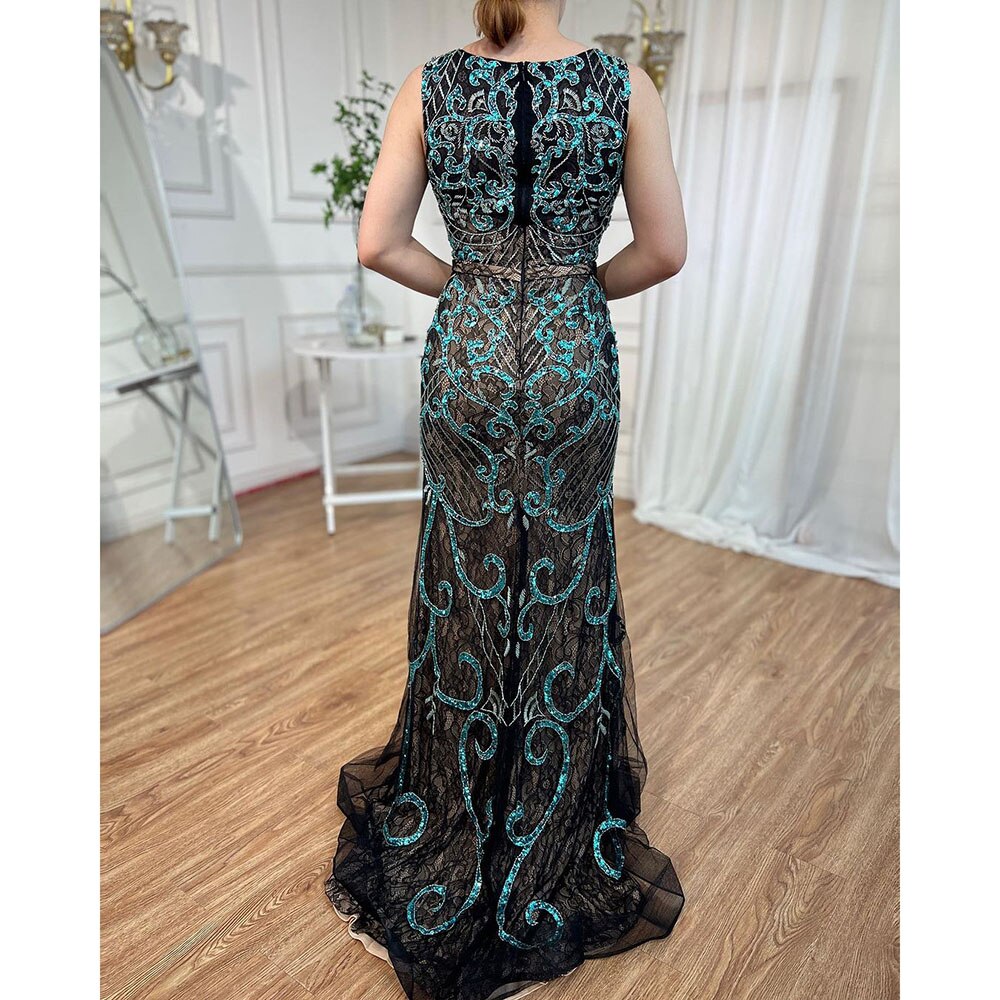 On Sale No Return No Refund Arabic Blue Sleeveless Mermaid Luxury Evening Dresses Gowns 2025 Lace Beaded Elegant For Woman Wedding Party LA6358