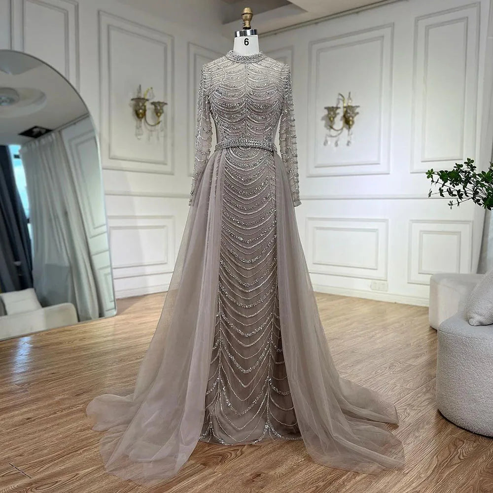 Arabic Caramel Beaded Overskirt Dubai Mermaid Evening Gown Luxury Dresses for Woman's Wedding Party LA72362A