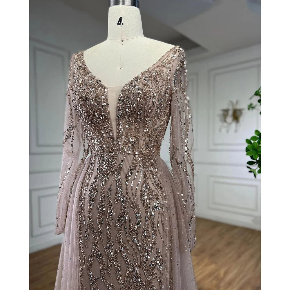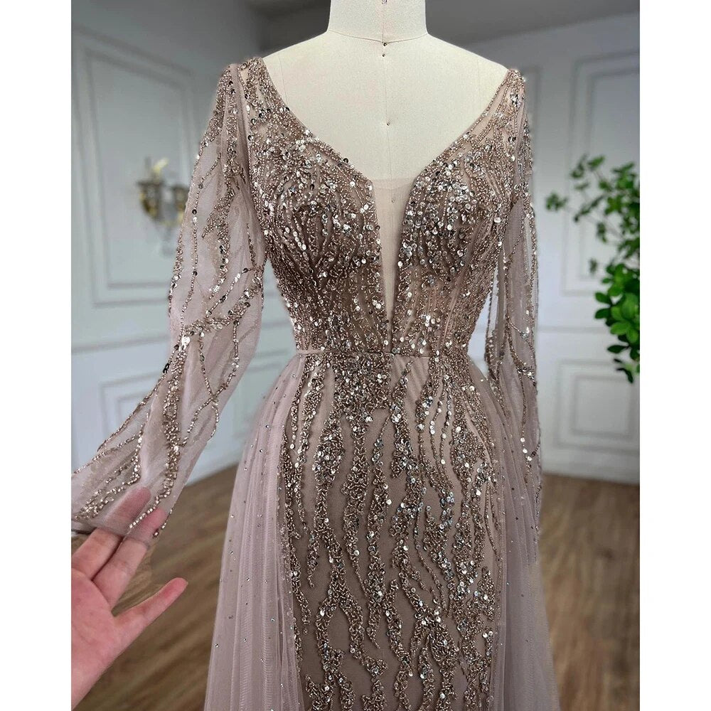 Arabic Caramel Mermaid Elegant With Overskirt Evening Dresses Gowns Beaded Luxury 2025 For Women Party LA71629A
