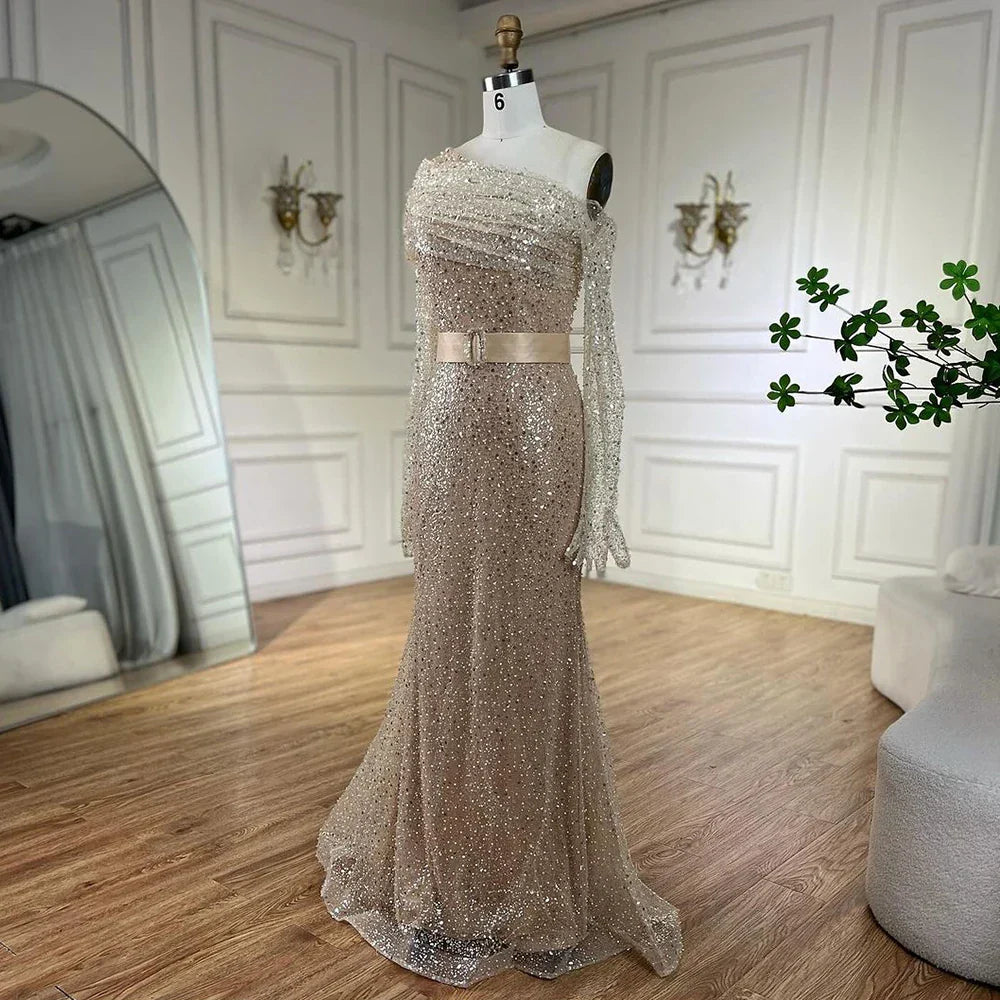Arabic Nude Elegant One Shoulder Beaded Luxury Dubai Evening Dresses Gowns For Women Wedding Party 2025 LA72318D