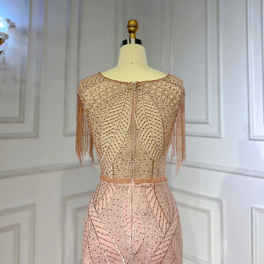 Arabic Peach Mermaid Elegant Tassel Beaded Luxury Evening Dresses Gowns 2025 For Women Wedding Party LA71843